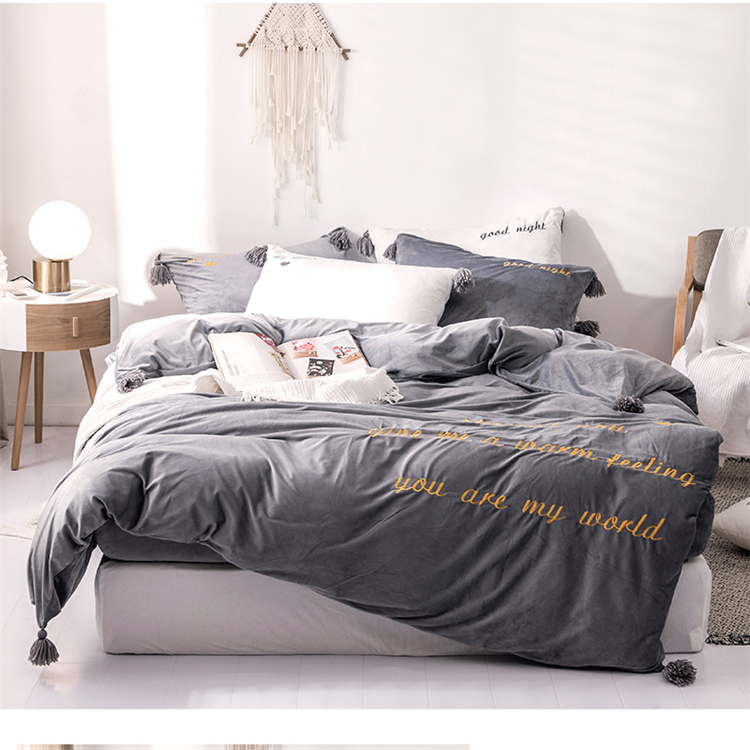 北纬27度 2019新款流苏刺绣加厚宝宝绒四件套 寒烟灰