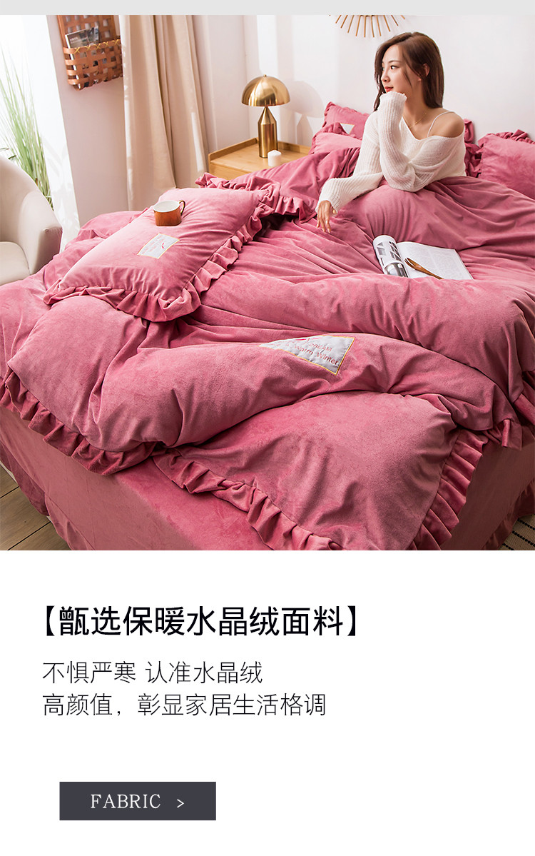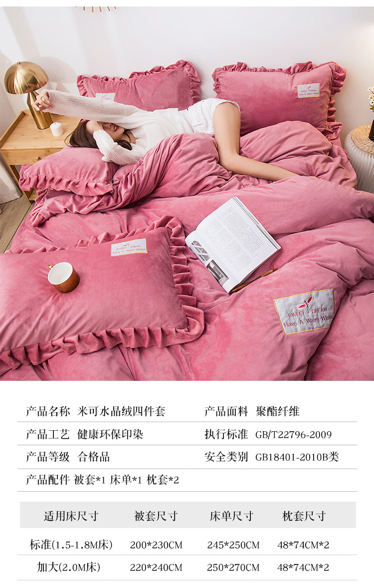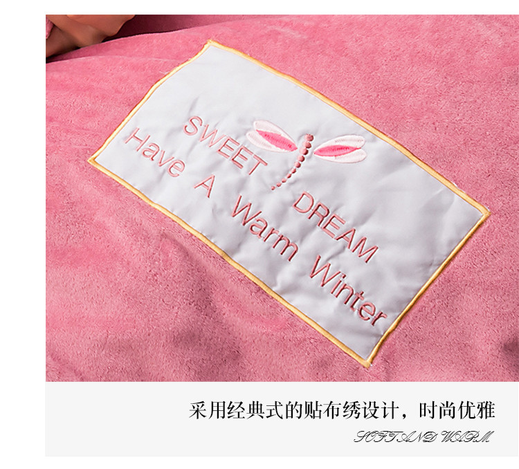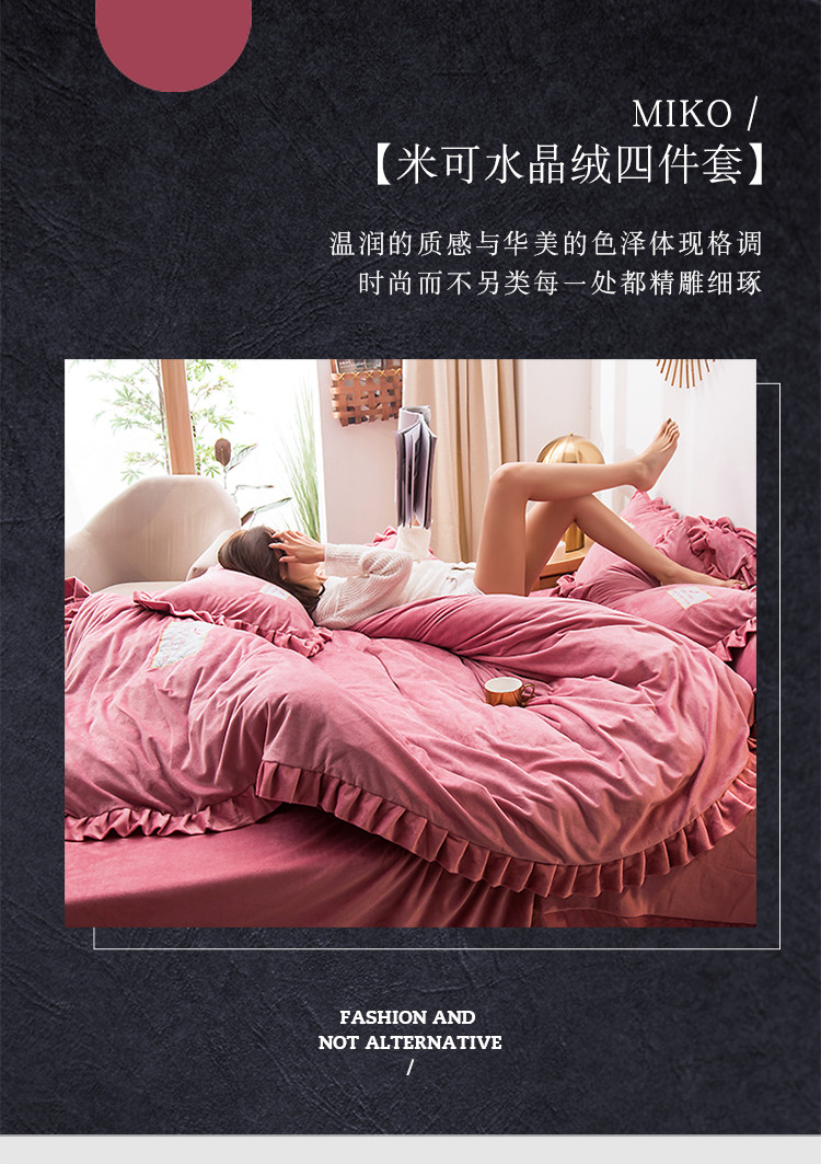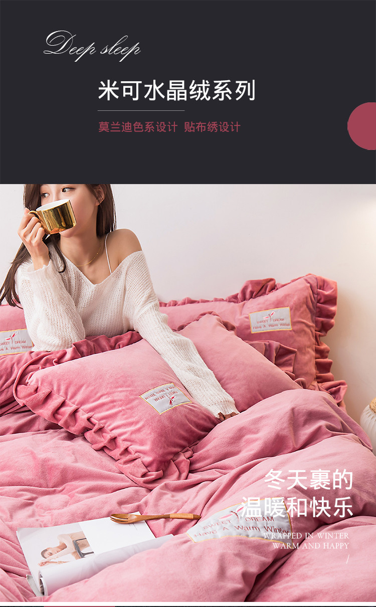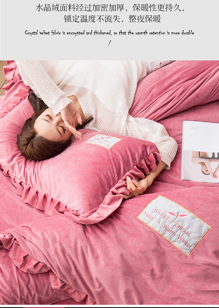 米奈 2020新款水晶绒贴布绣四件套 香妃粉