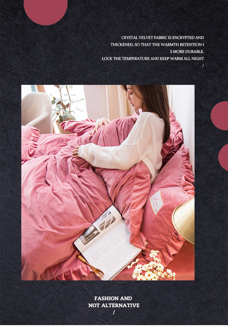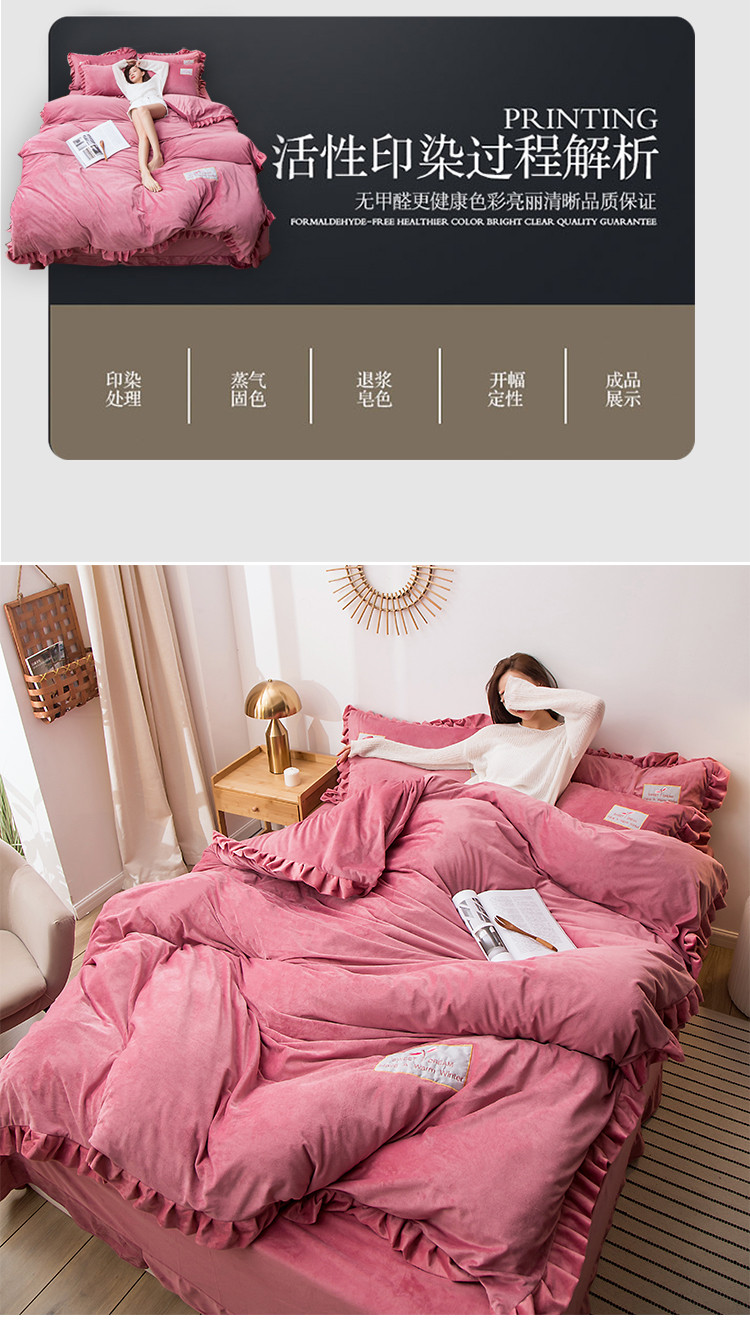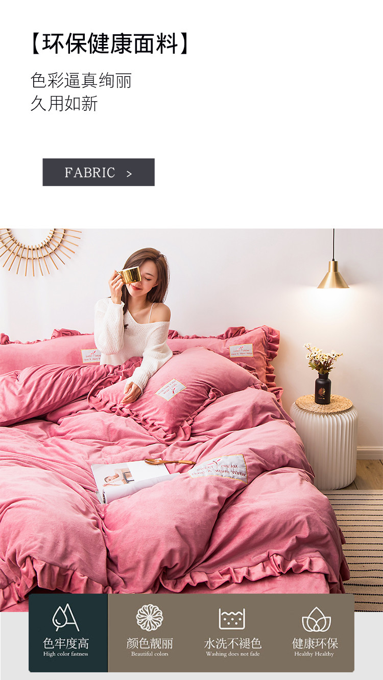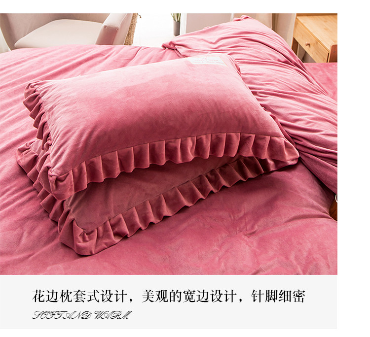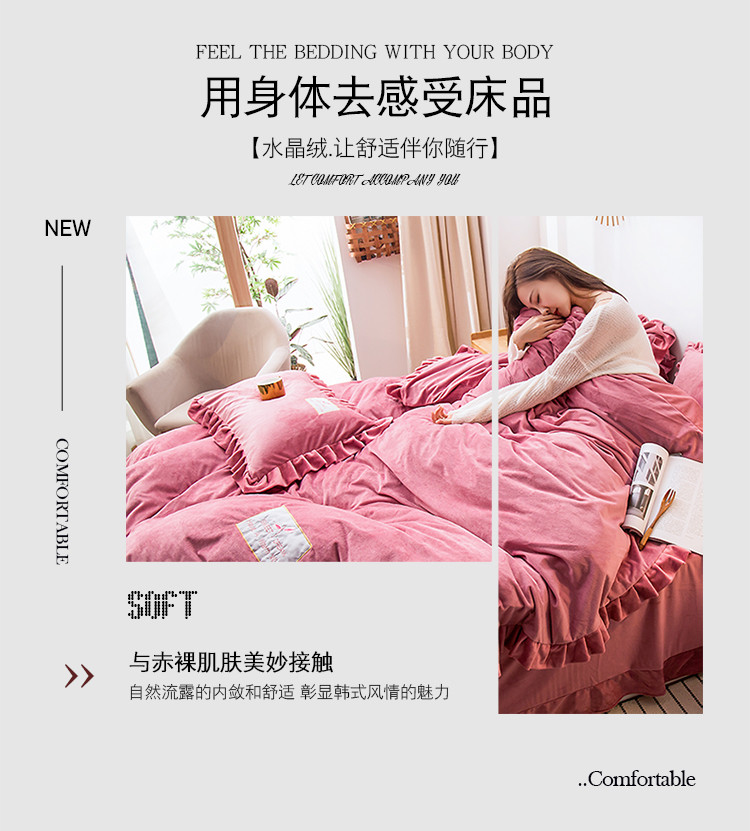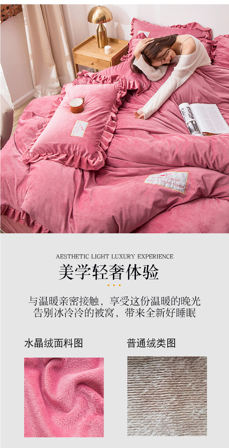 米奈 2020新款水晶绒贴布绣四件套 香妃粉