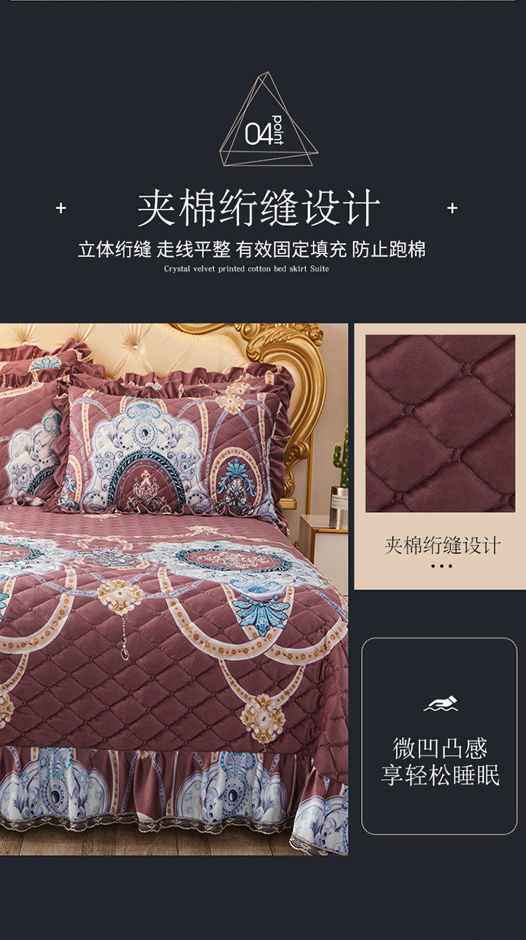 (总)宜凡家纺 2025新款婴儿绒压花全夹棉床裙四件套,韵雅-中国红,韵雅-黑天鹅