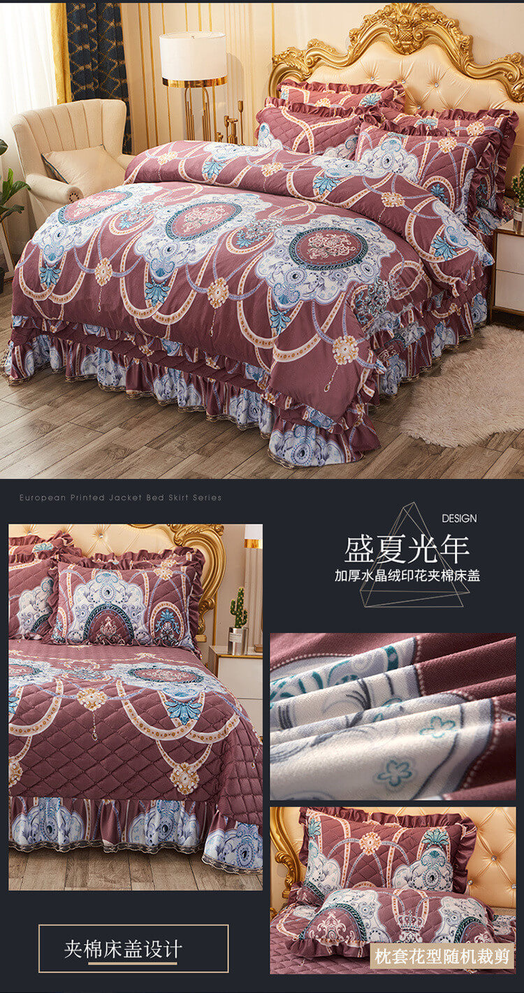 (总)宜凡家纺 2025新款兔绒提花牛奶绒夹棉床裙四件套,爱心 少女粉,爱心 粉紫,爱心 驼色,蝶舞 大红,蝶舞 米色,蝶舞 浅紫,蝶舞 玉色,简爱 苍青,简爱 豆沙紫,简爱 玉色,樱桃 苍青,樱桃 豆沙紫,樱桃 奶油白