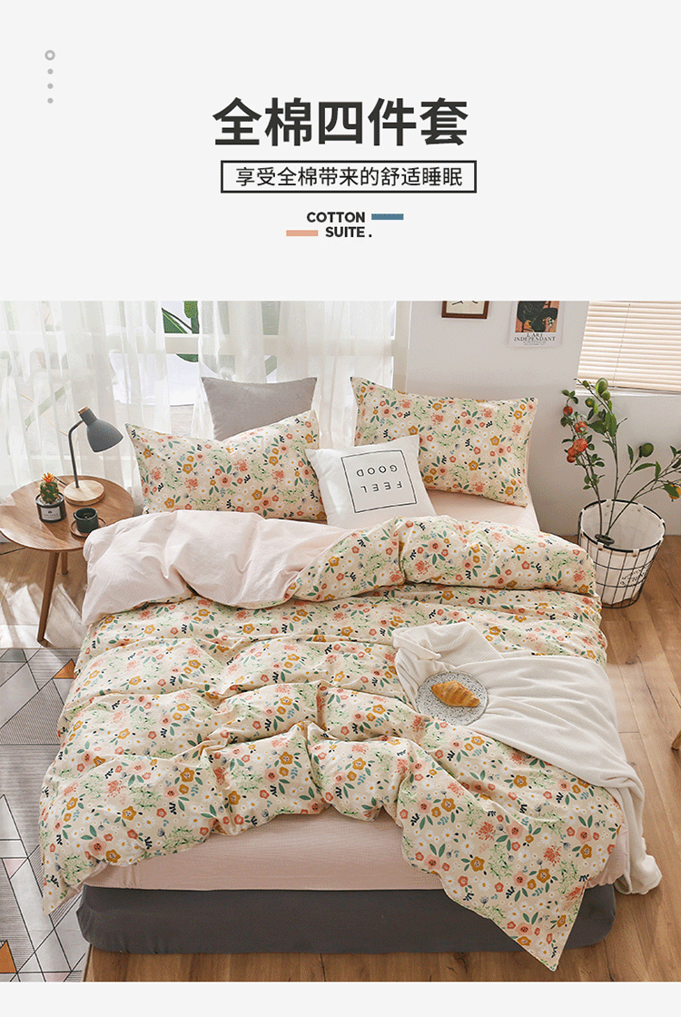 (总)感遇家纺 2025新款小清新甜系全棉四件套,百丽兔,波点小女孩,点点小狗,复古樱桃,格子草莓,格子樱桃,花间牧歌,灰条猫咪,奶绿,宁夏,森林小熊猫,甜心波点