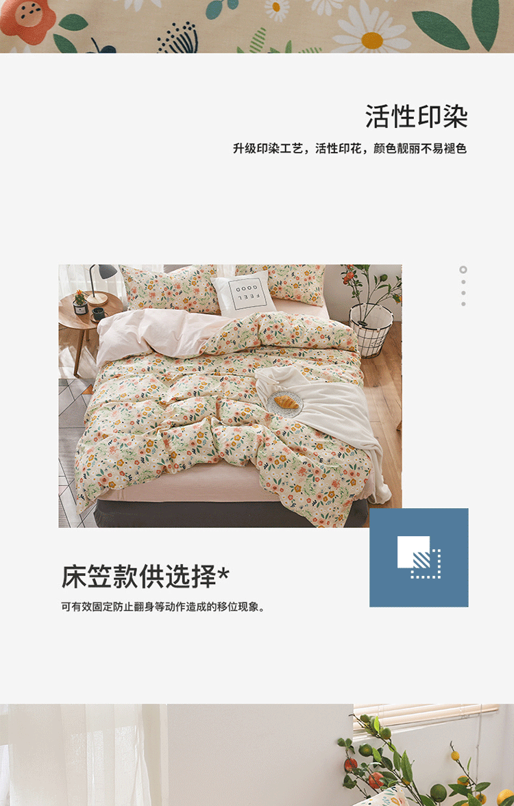 (总)感遇家纺 2022新款全棉印花四件套,格子小花,黑格恐龙,蓝色心情,浅暖