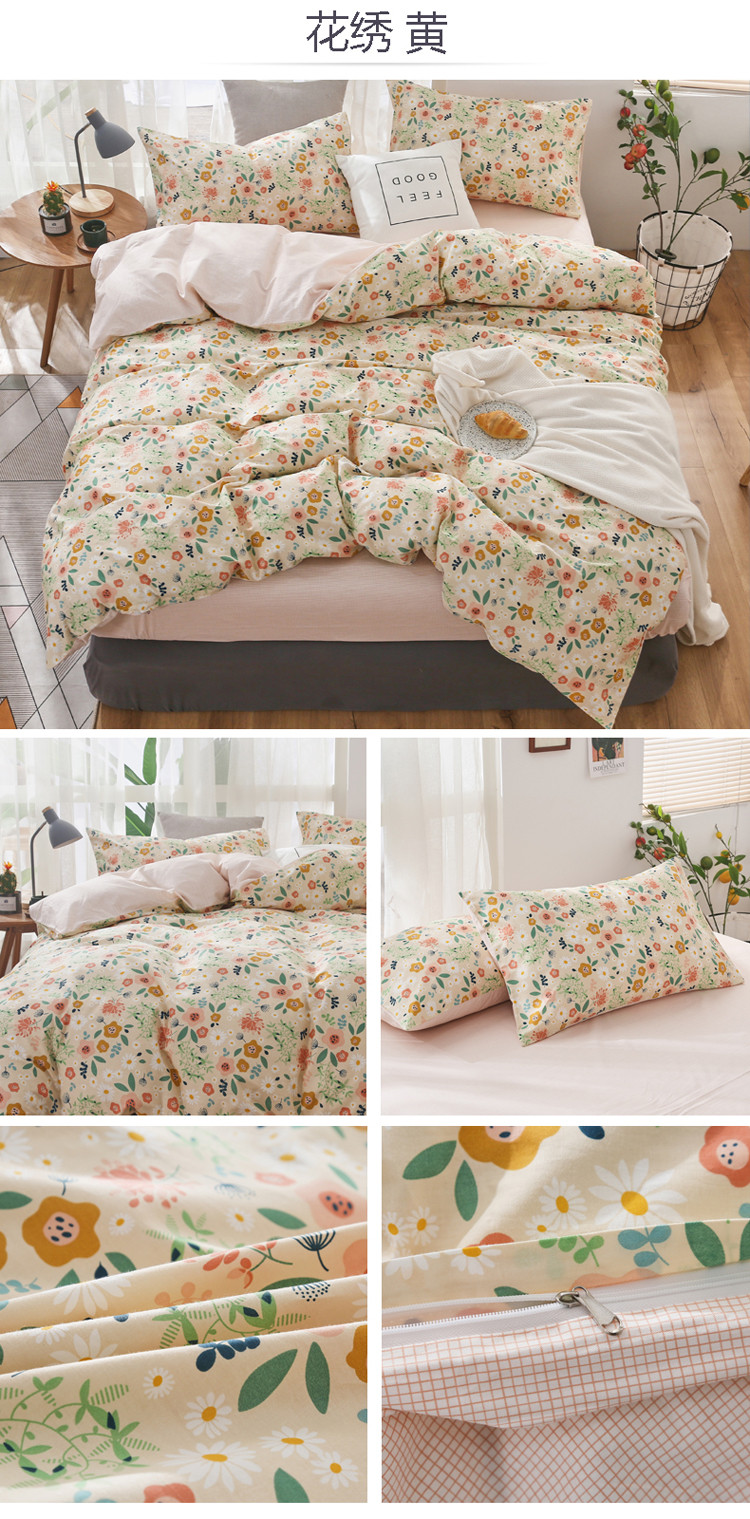 商品名称:感遇家纺 2020年春夏全棉四件套纯棉三件套 花绣-黄