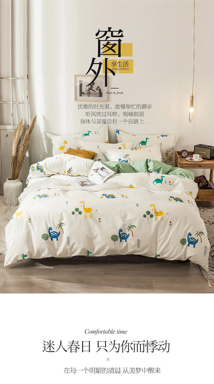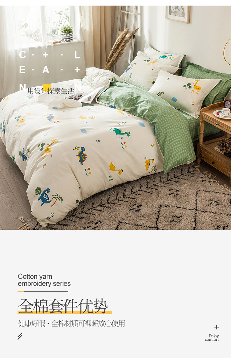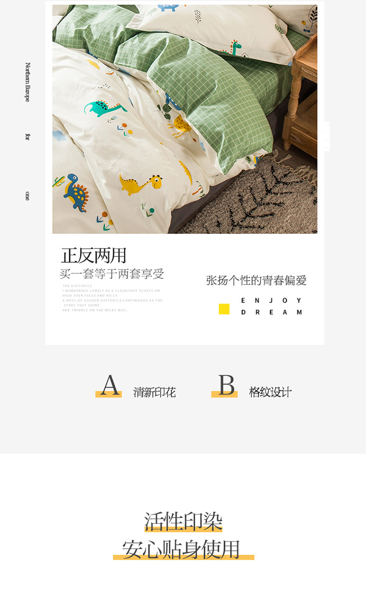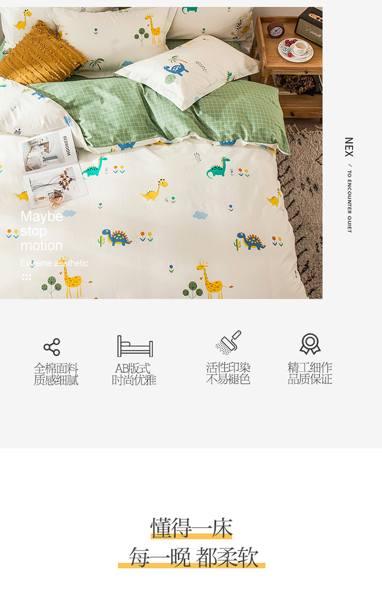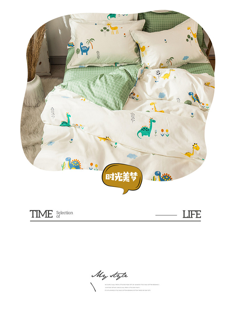 当前位置: 91家纺网 > 商品网购 > 床品套件 > 四件套 > 全棉普通四件套 > 宝齐莱家纺 2020新款13372印花小清新四件套 萌恐龙