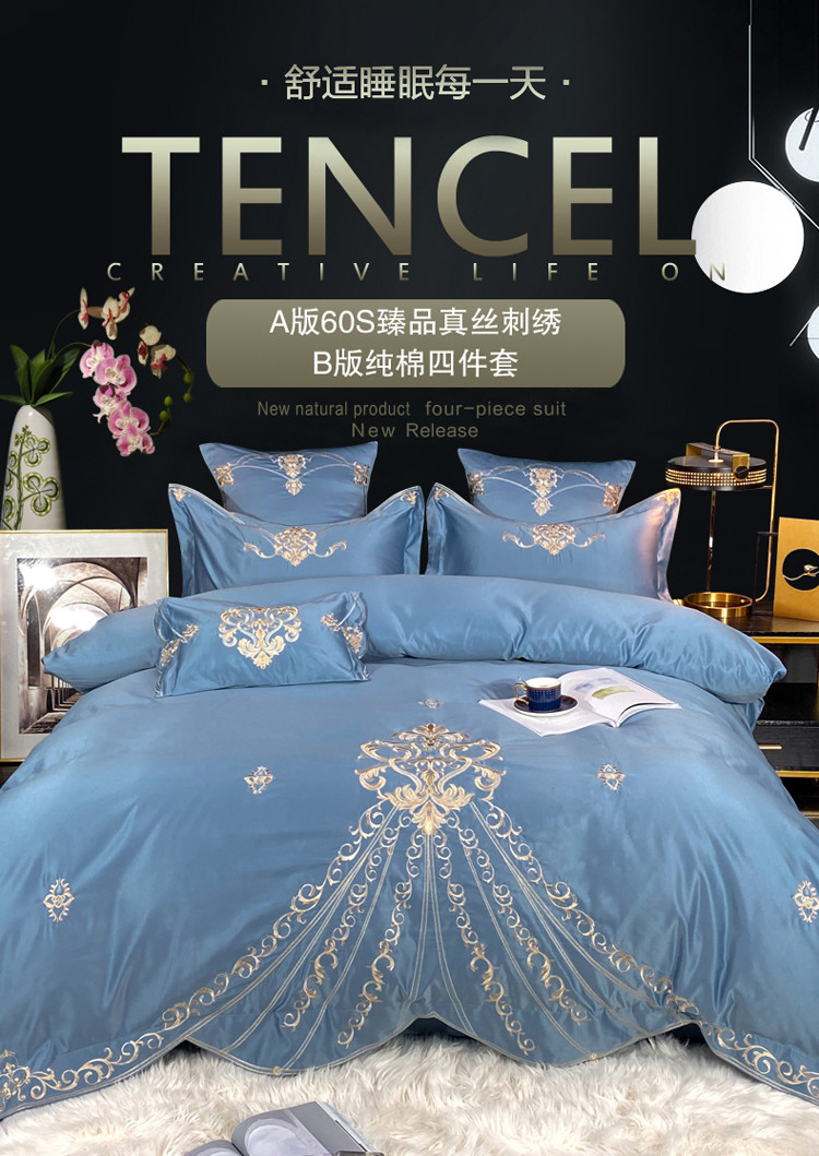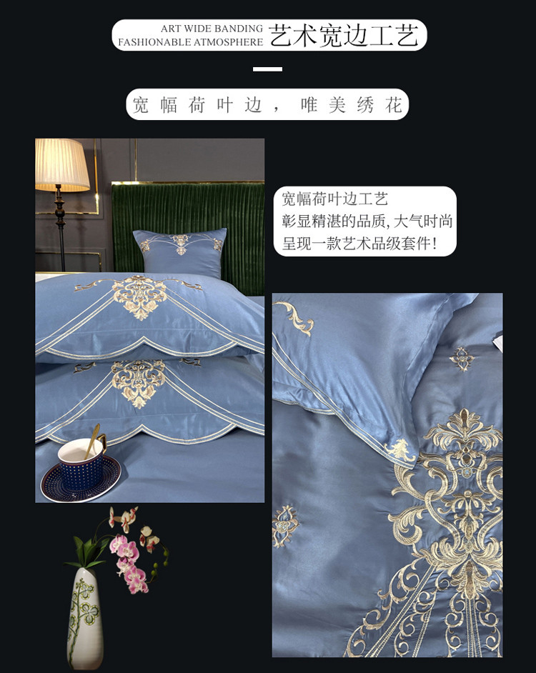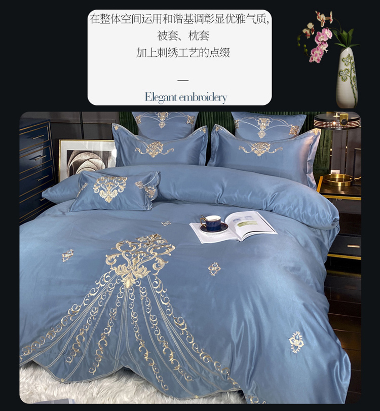 (总)宅家居 2023新款 设计款轻奢高精密贡缎提花臻品真丝四件套,迪奥-宾利蓝,迪奥-银灰,山茶花-粉玉,山茶花-蓝灰,山茶花-浅紫,香乃乃-米白