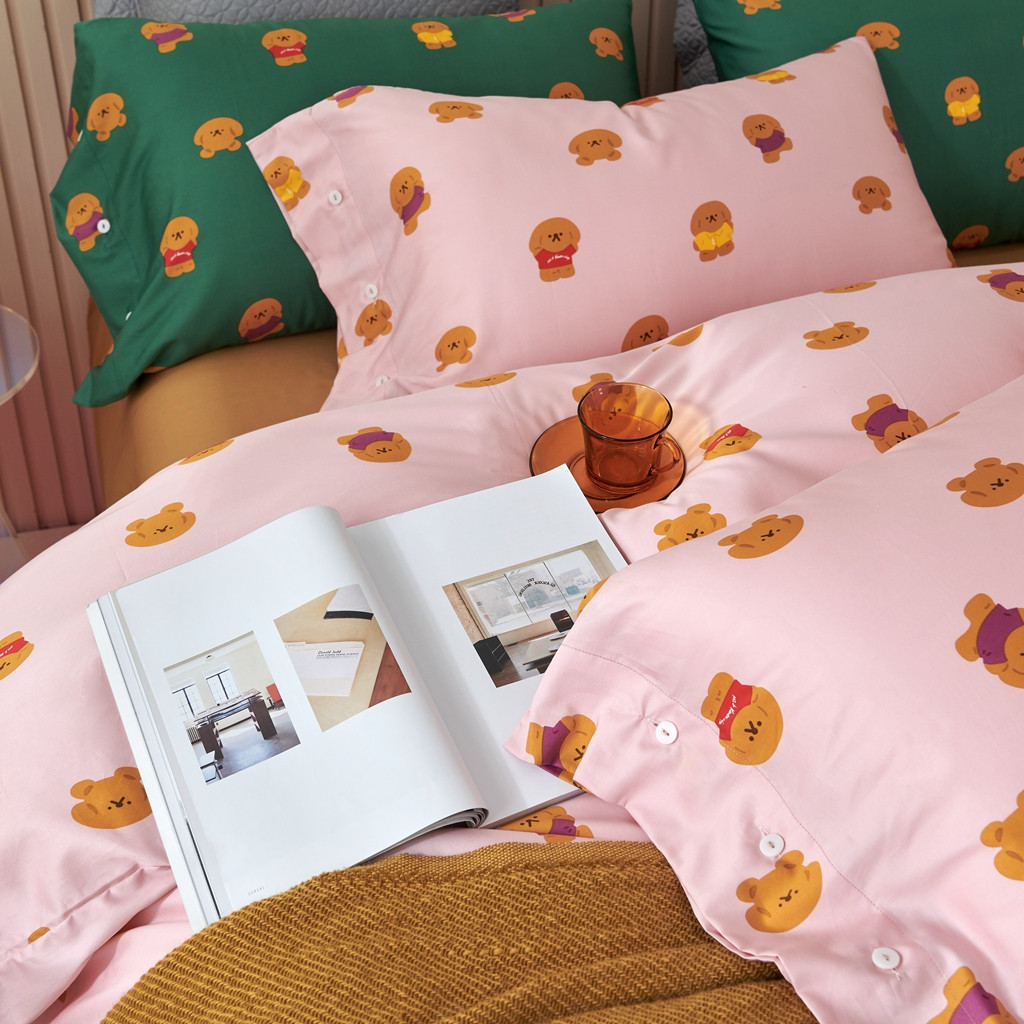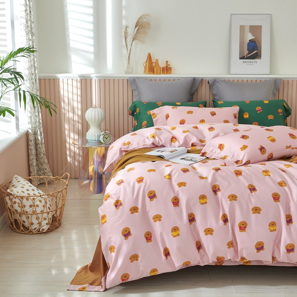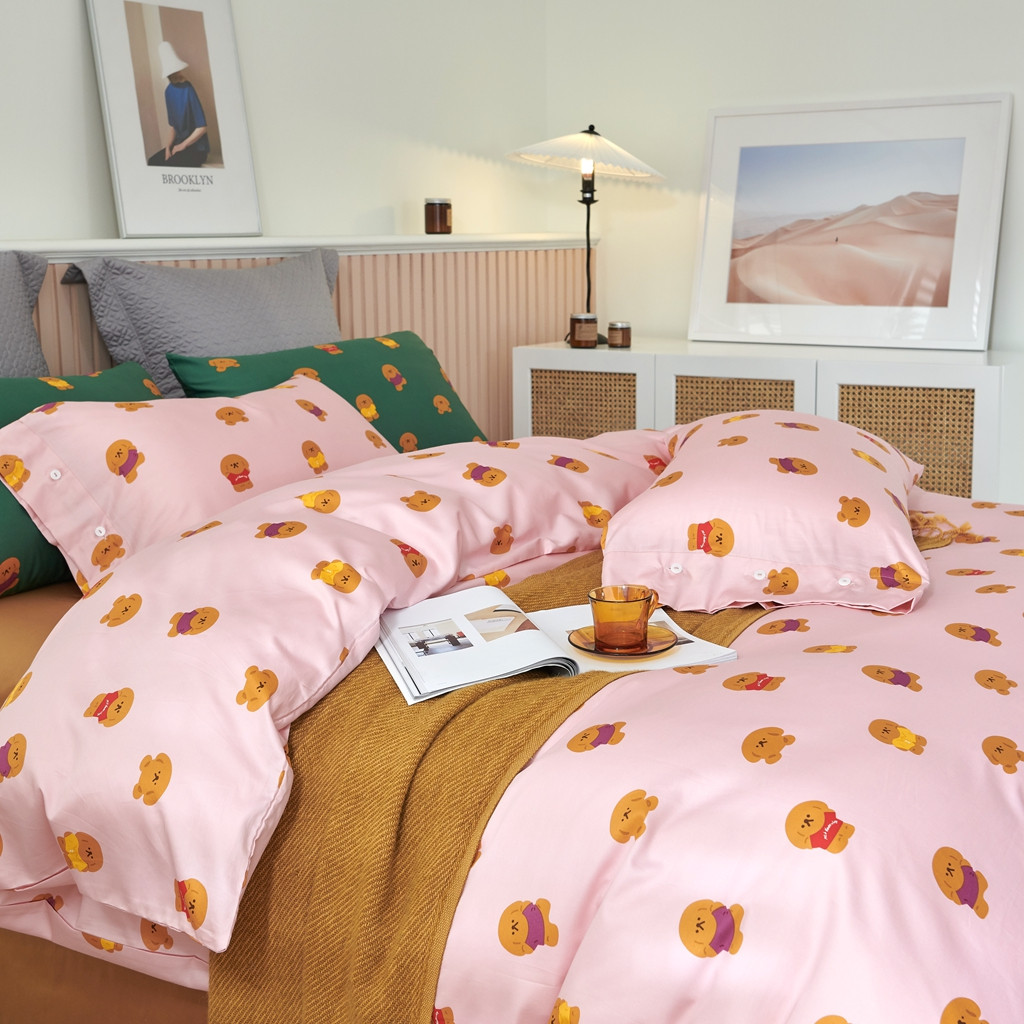优然居 2020新款60S长绒棉活性印花四件套 饼干熊粉