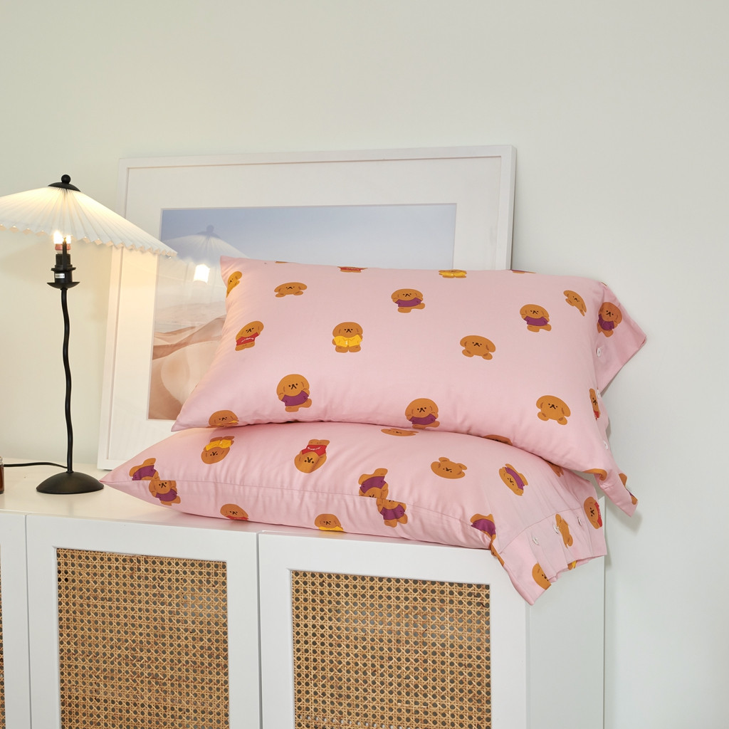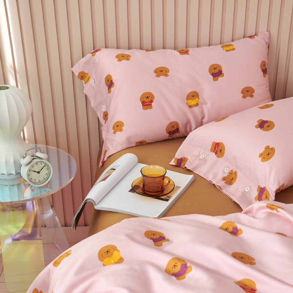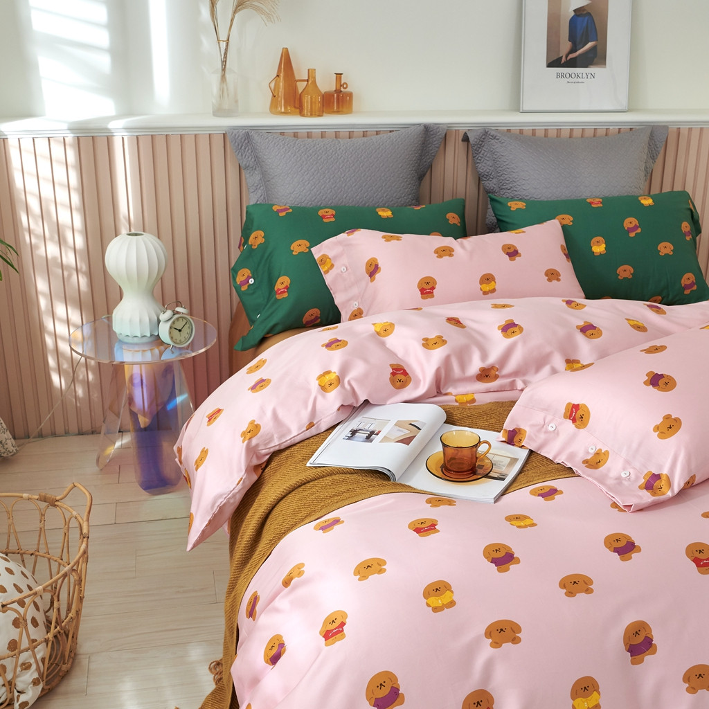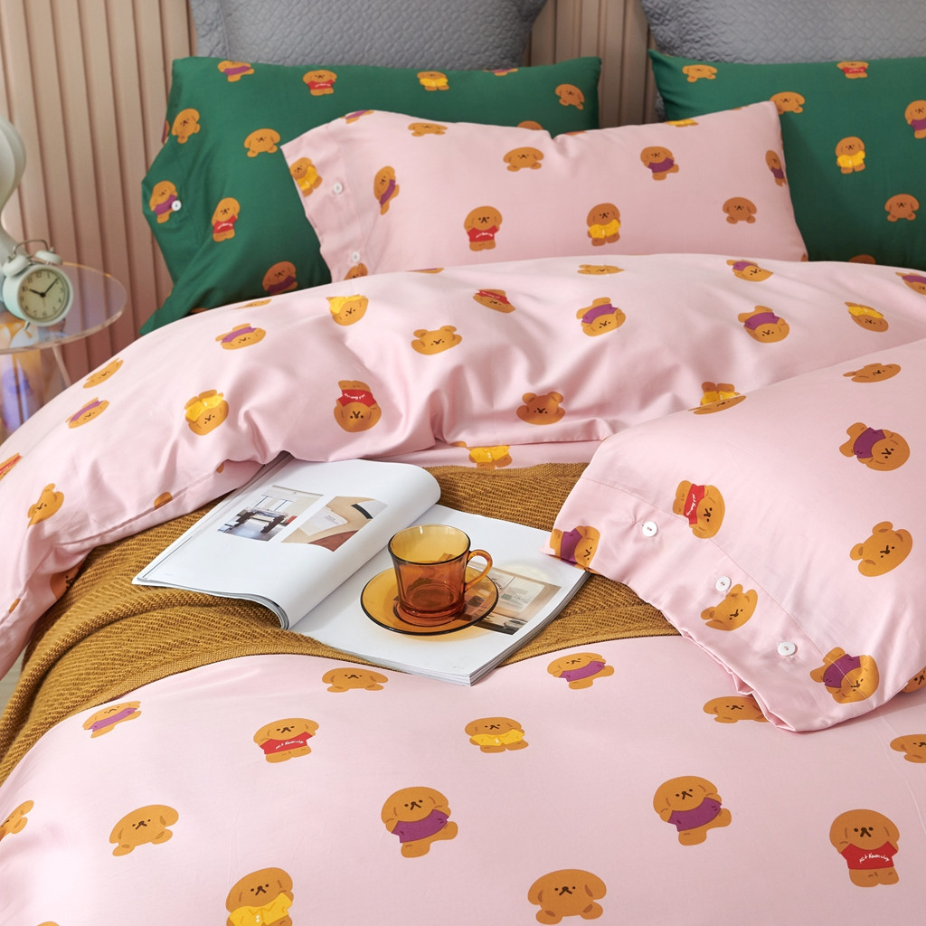 优然居 2020新款60S长绒棉活性印花四件套 饼干熊粉