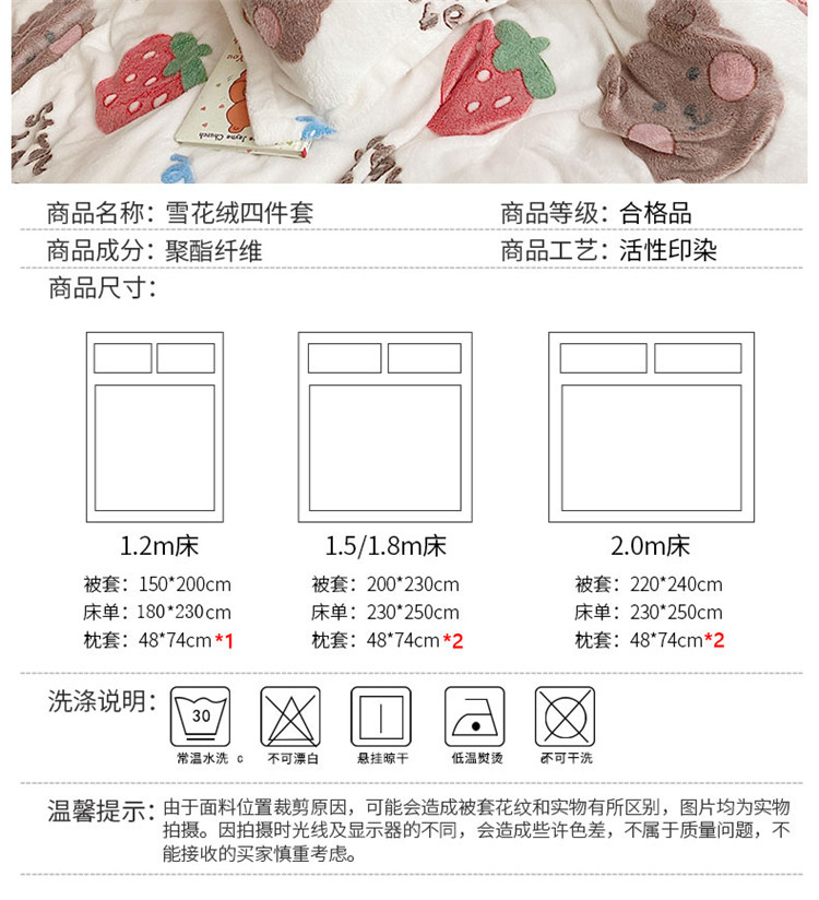 商品名称:川悦生活 2020新款雪花绒四件套 果子蛋糕