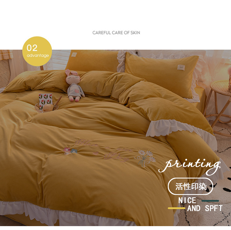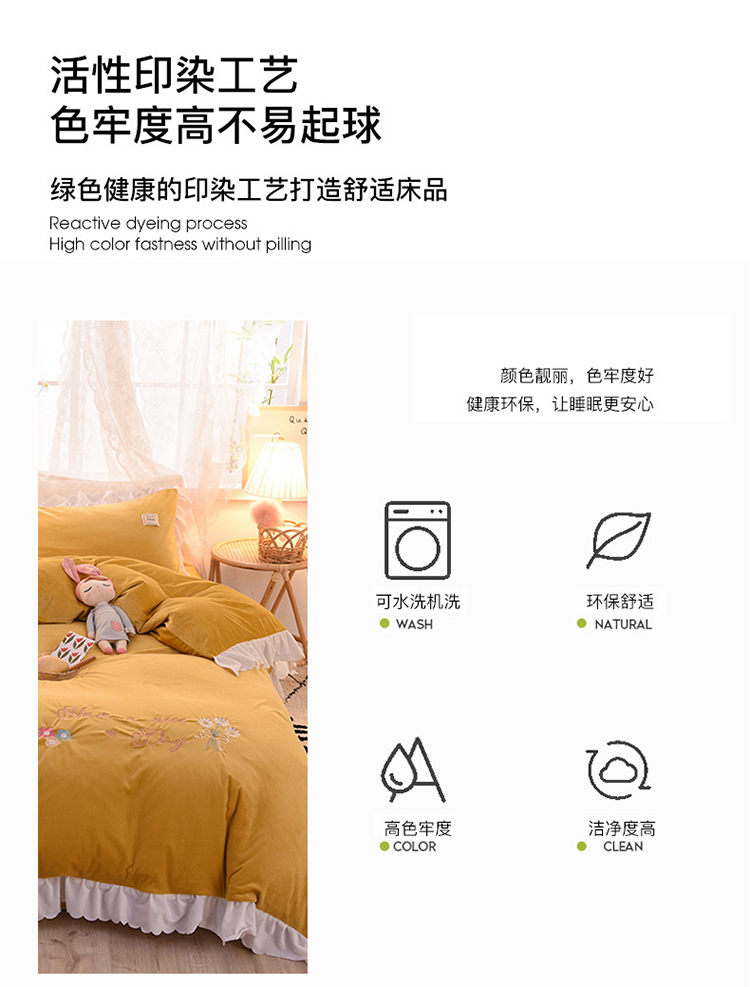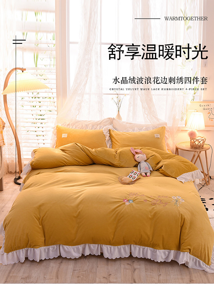 商品名称:艾米家居 2020新款水晶绒四件套美妙时光 黄