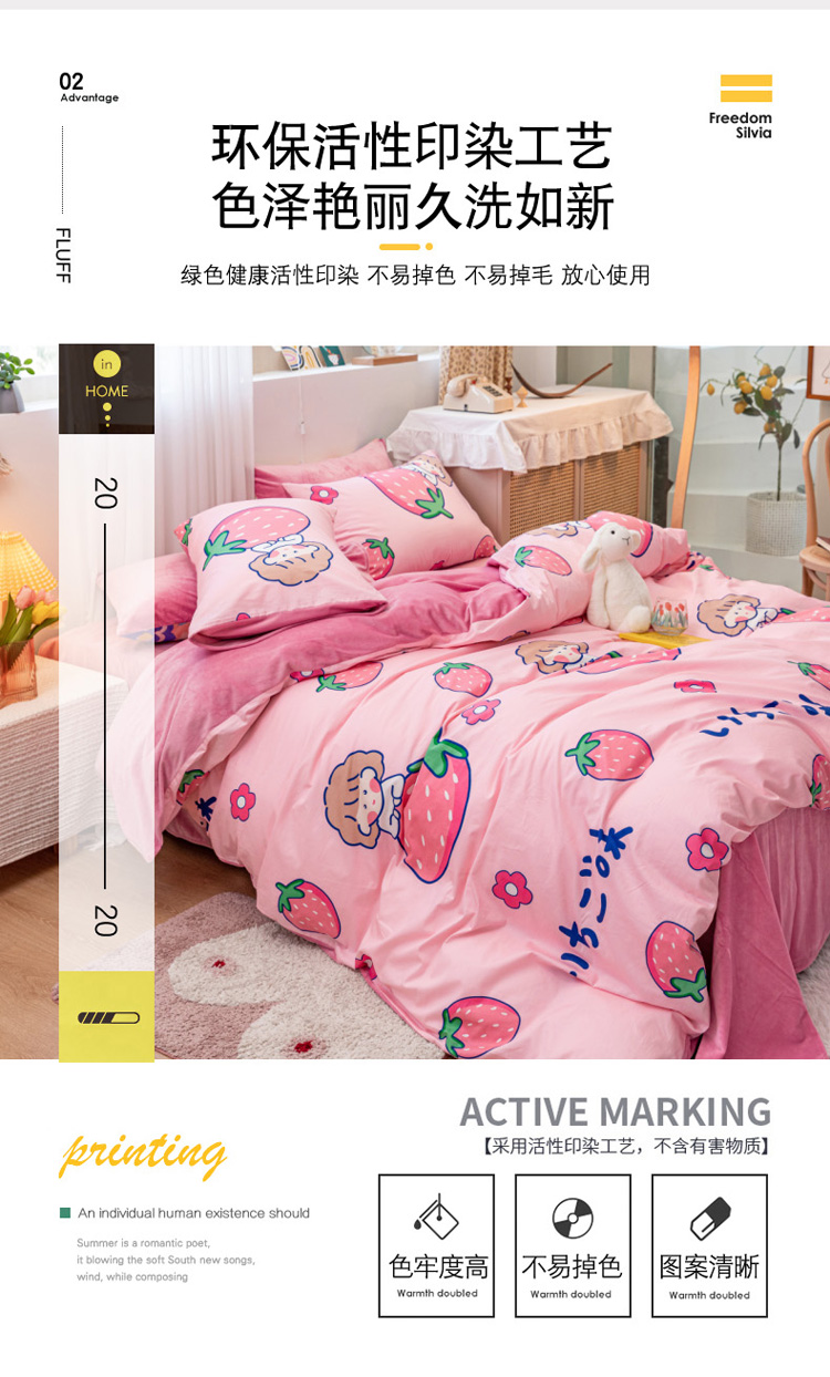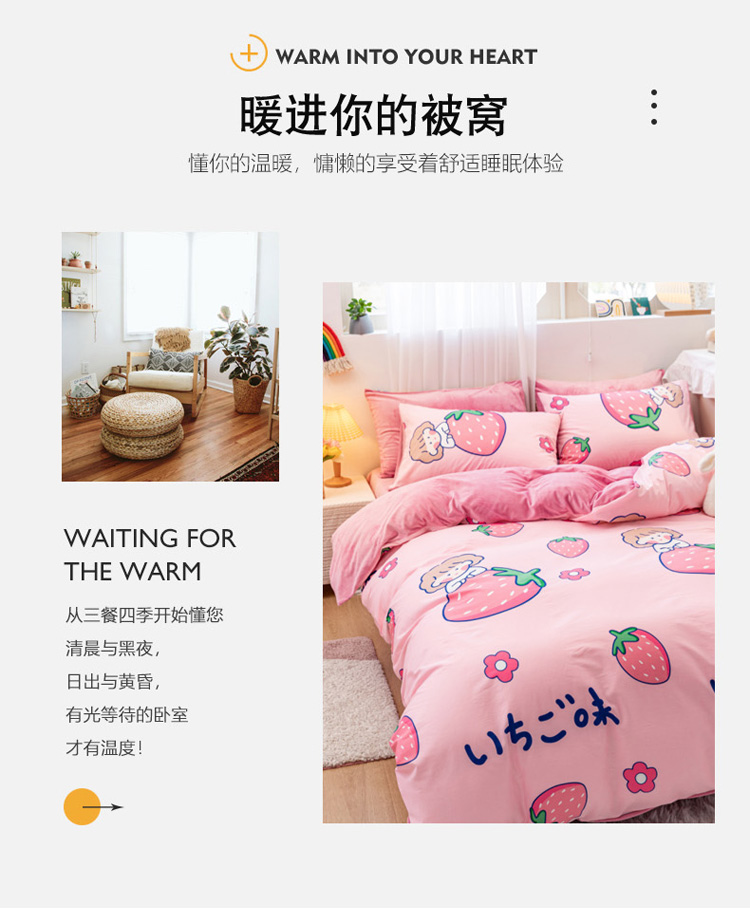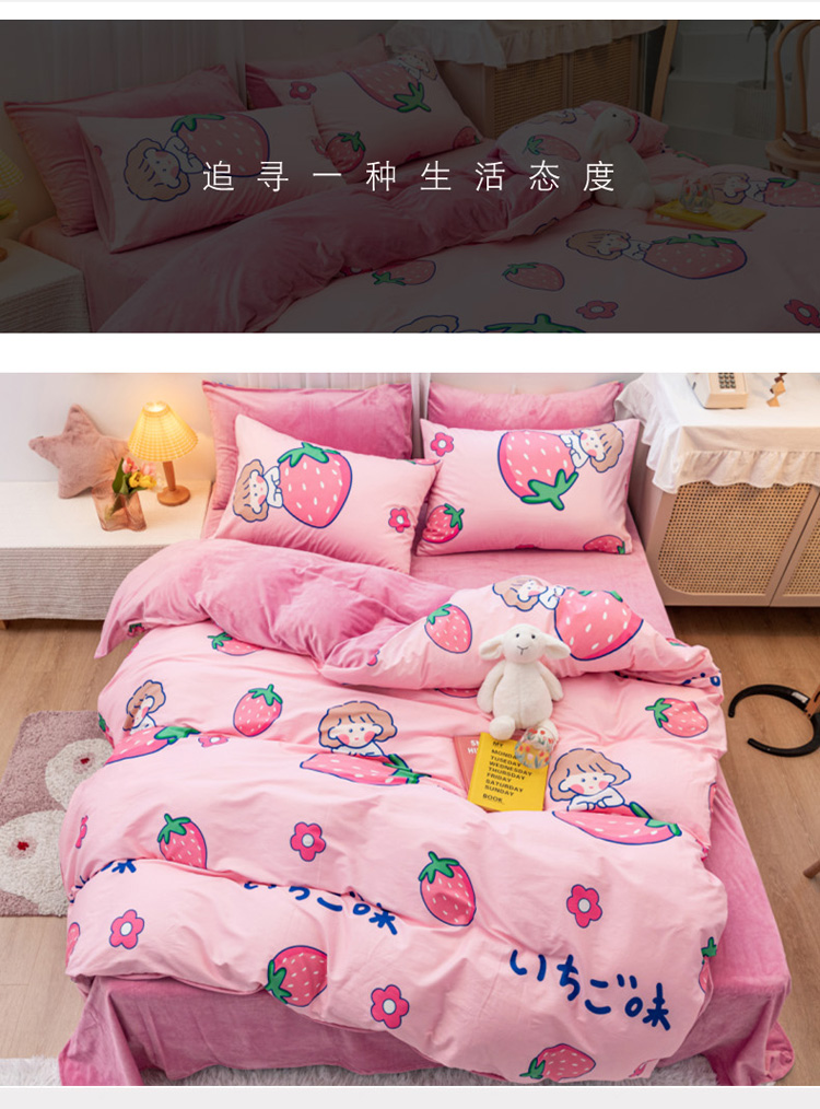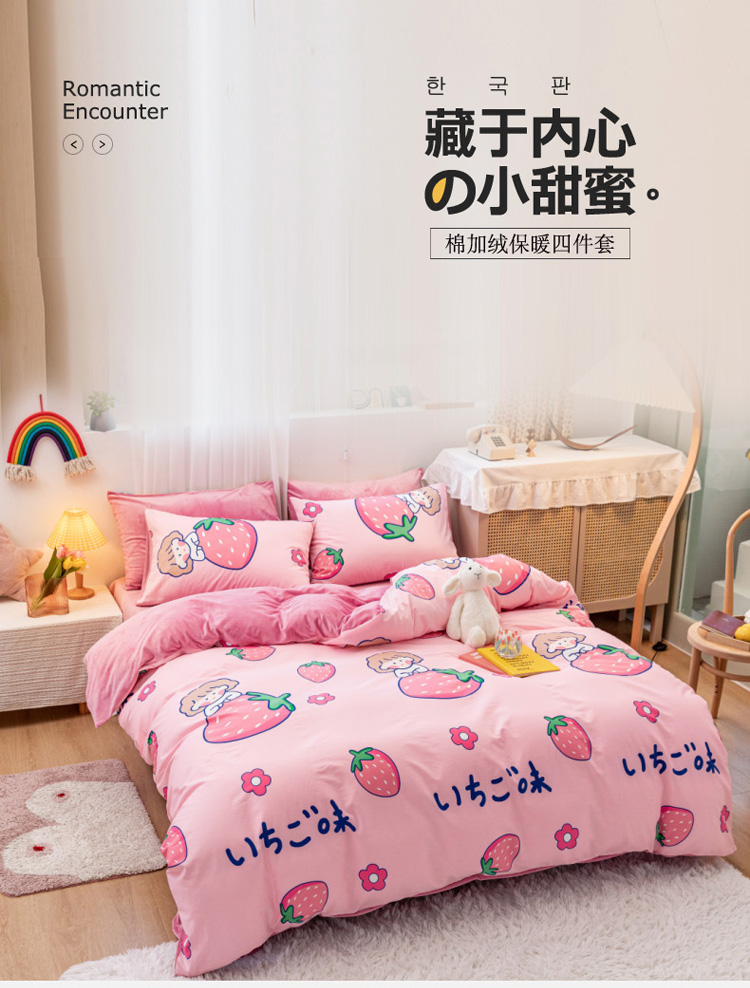 珺柔 2020新款棉加绒保暖四件套日文草莓