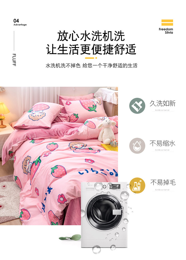 商品名称:珺柔 2020新款棉加绒保暖四件套日文草莓