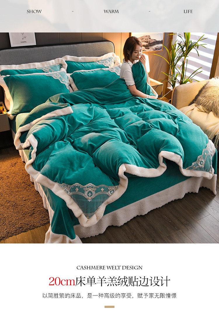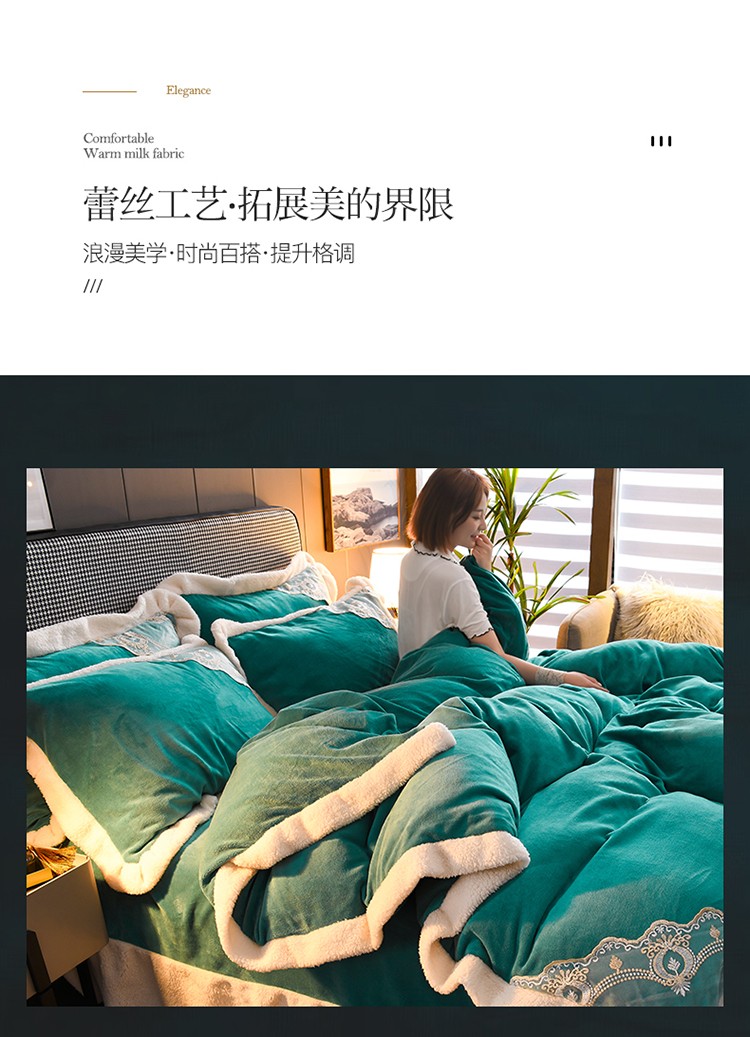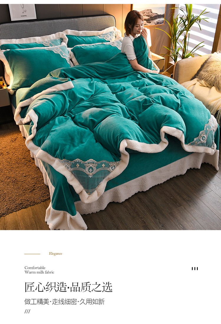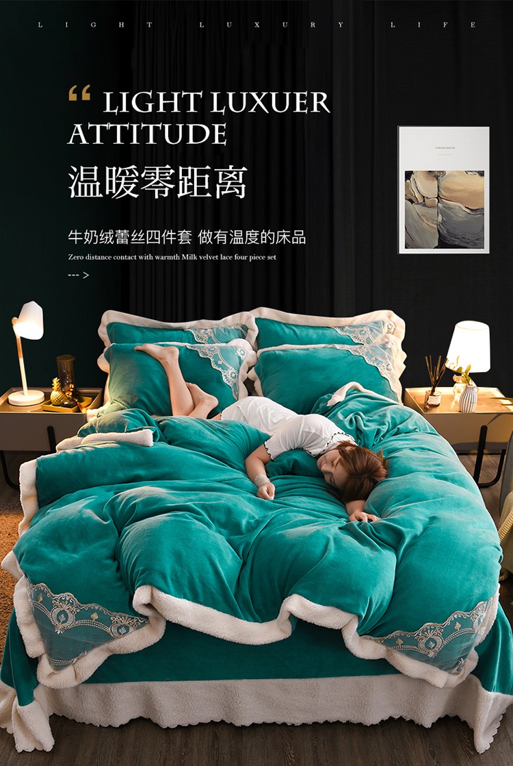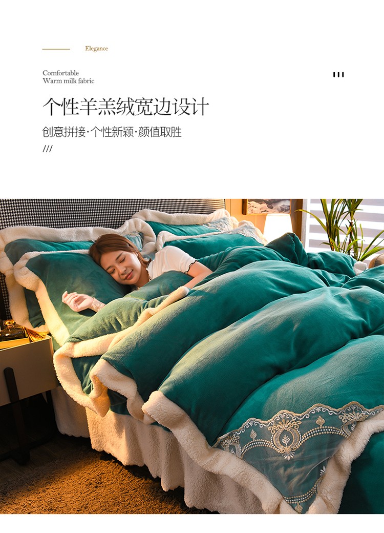 商品名称:澳洲羽 2024新款牛奶绒蕾丝拼接款四件套 豆绿