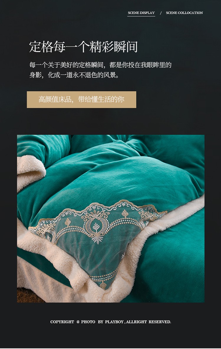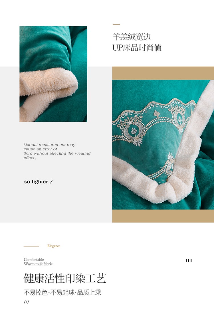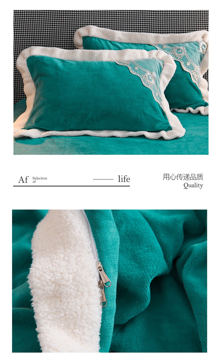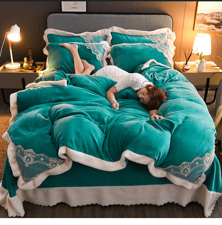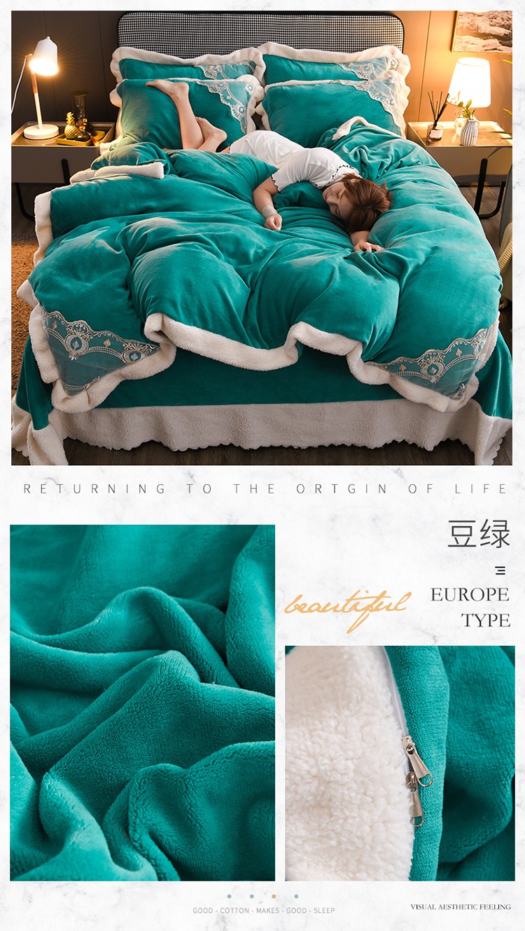 商品名称:澳洲羽 2024新款牛奶绒蕾丝拼接款四件套 豆绿