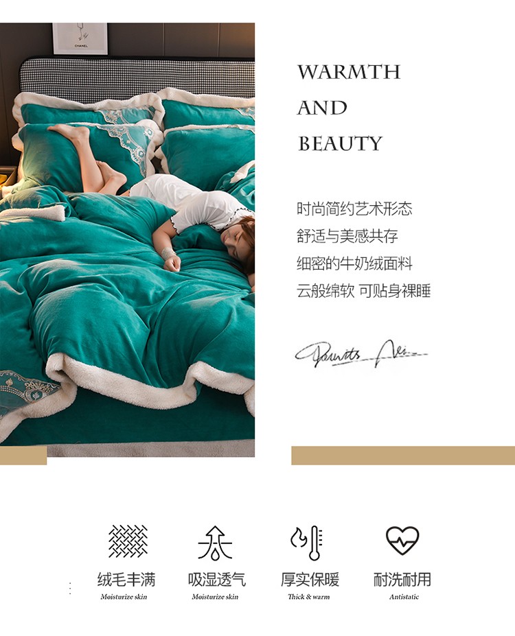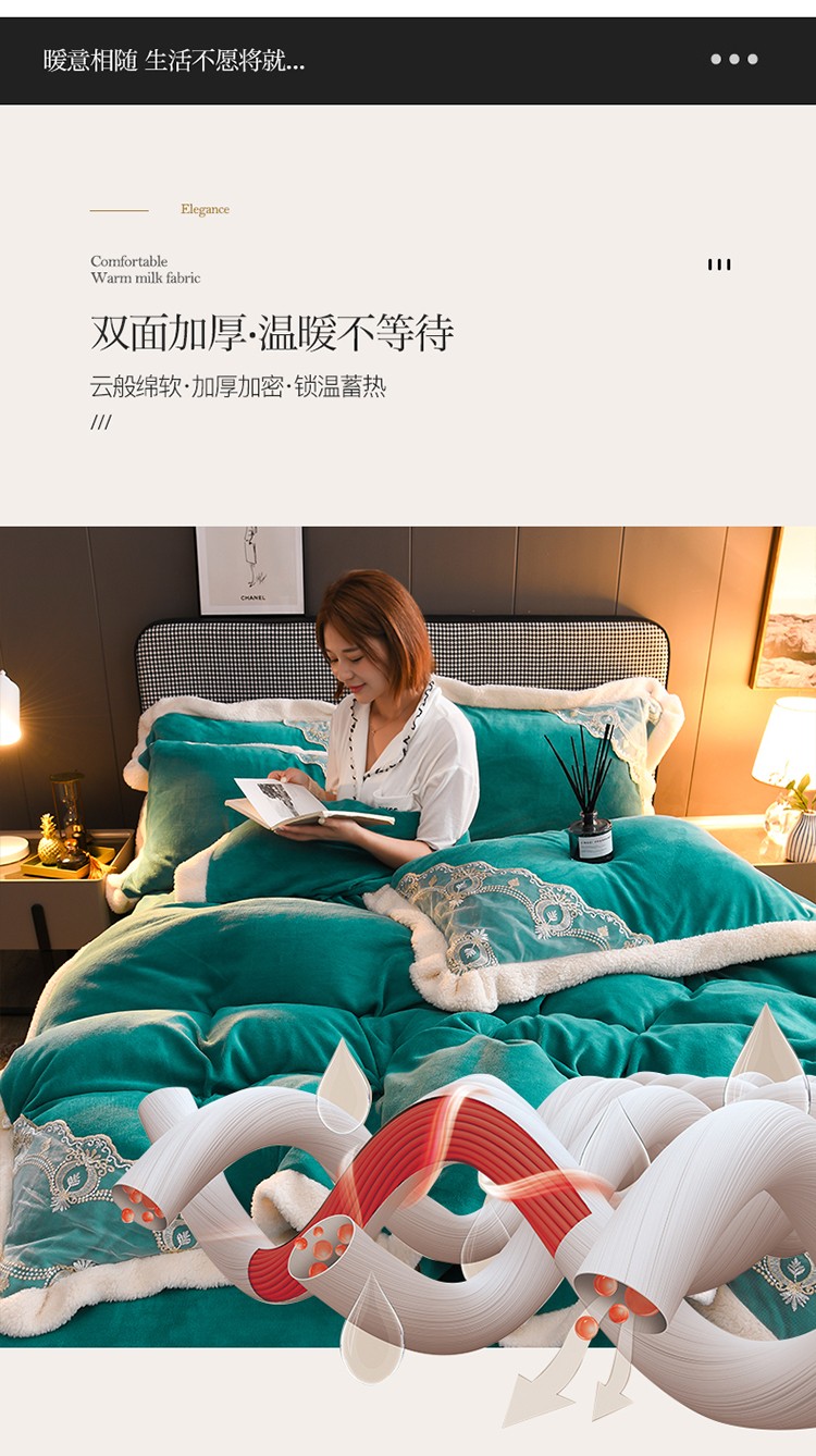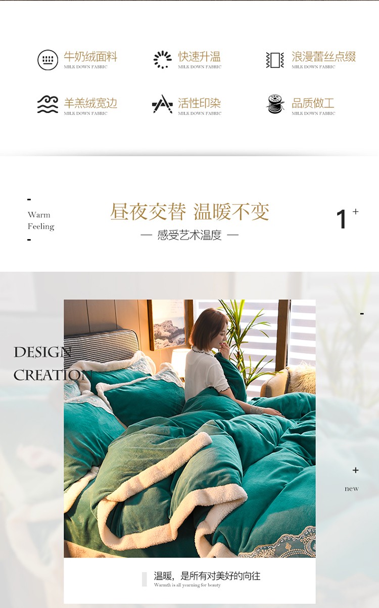 澳洲羽 2024新款牛奶绒蕾丝拼接款四件套 豆绿