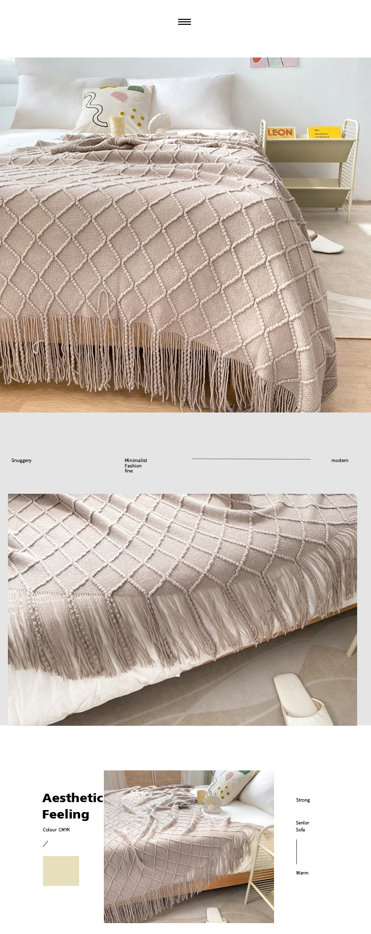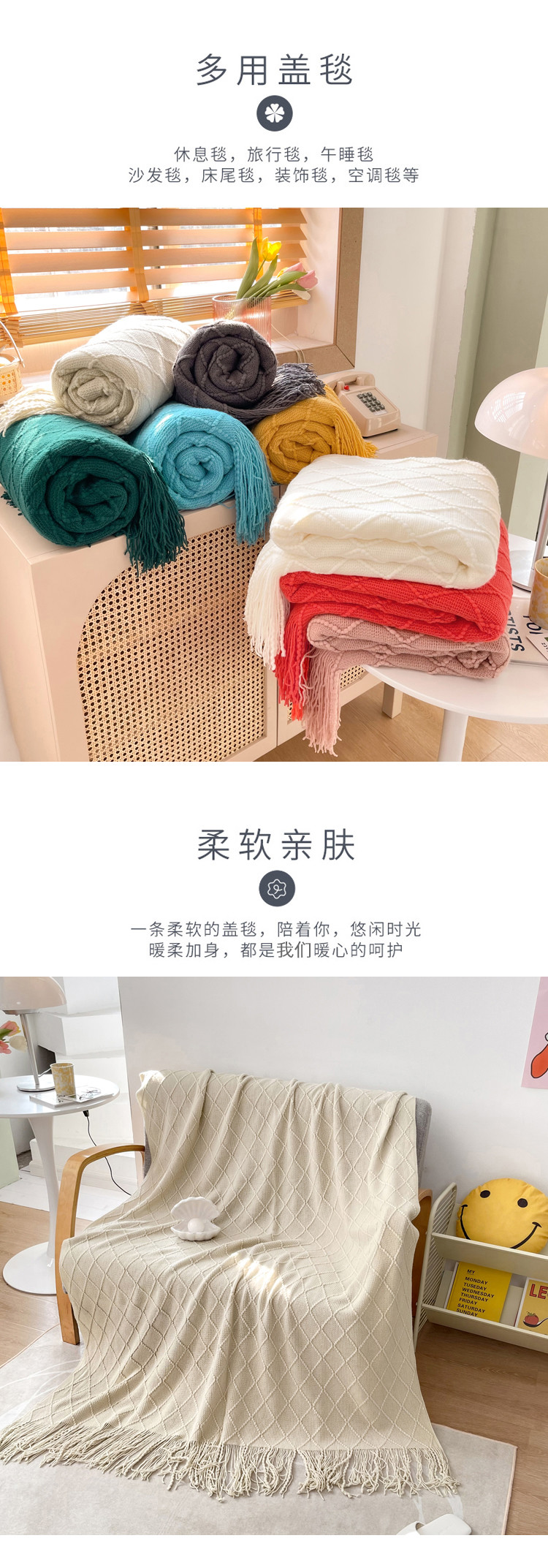 商品名称:朴尔针织流苏搭毯搭巾盖毯沙发巾床尾毯床尾旗酒店毯毛毯 杏黄色