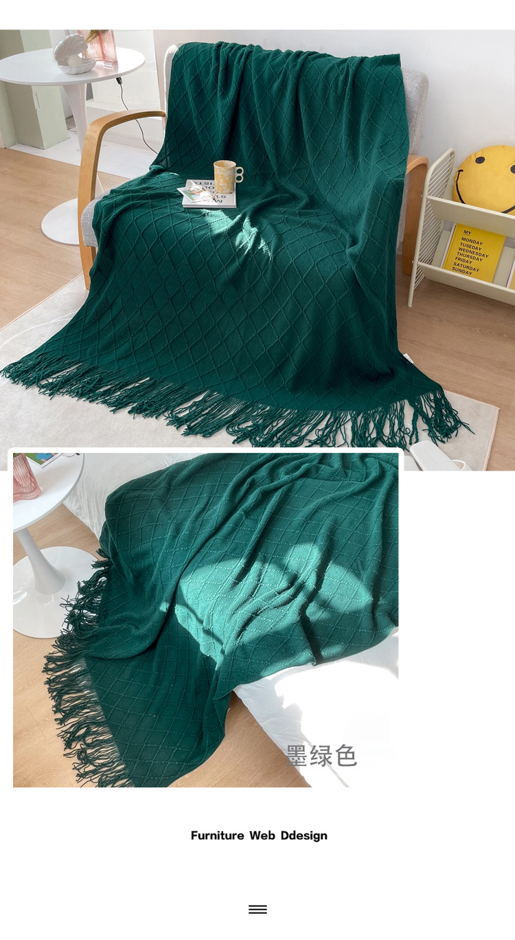 朴尔针织流苏搭毯搭巾盖毯沙发巾床尾毯床尾旗酒店毯毛毯 杏黄色