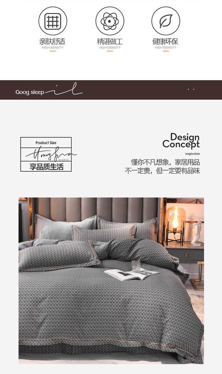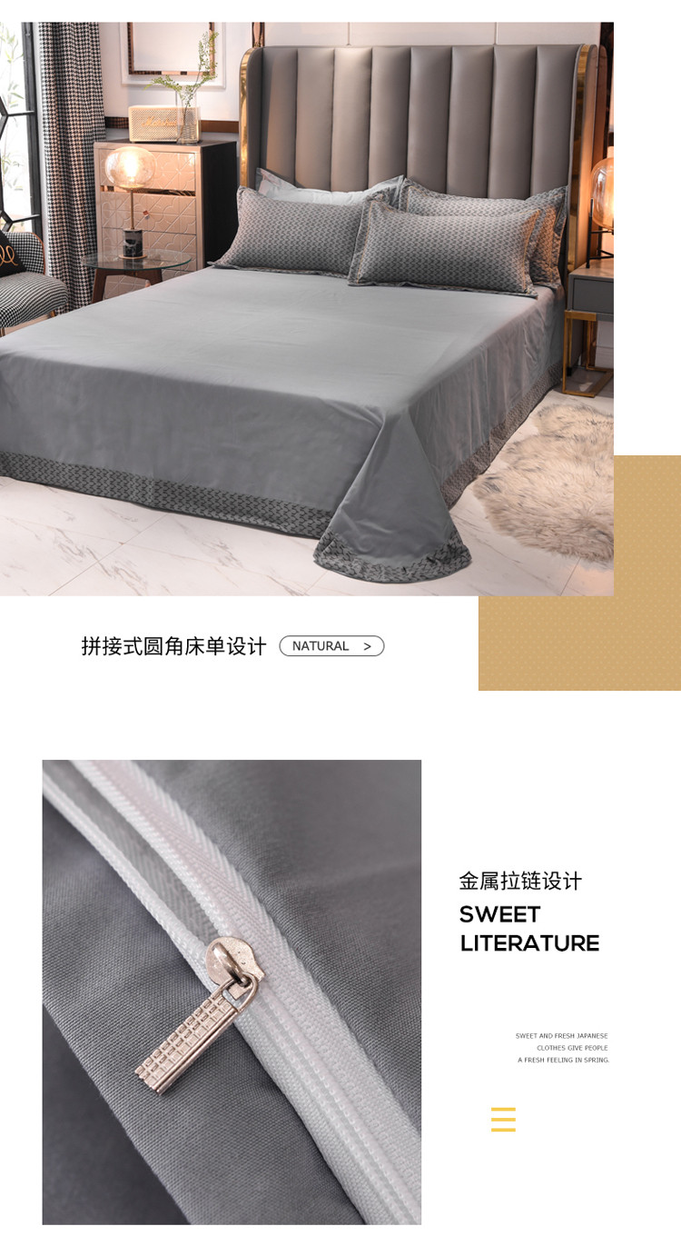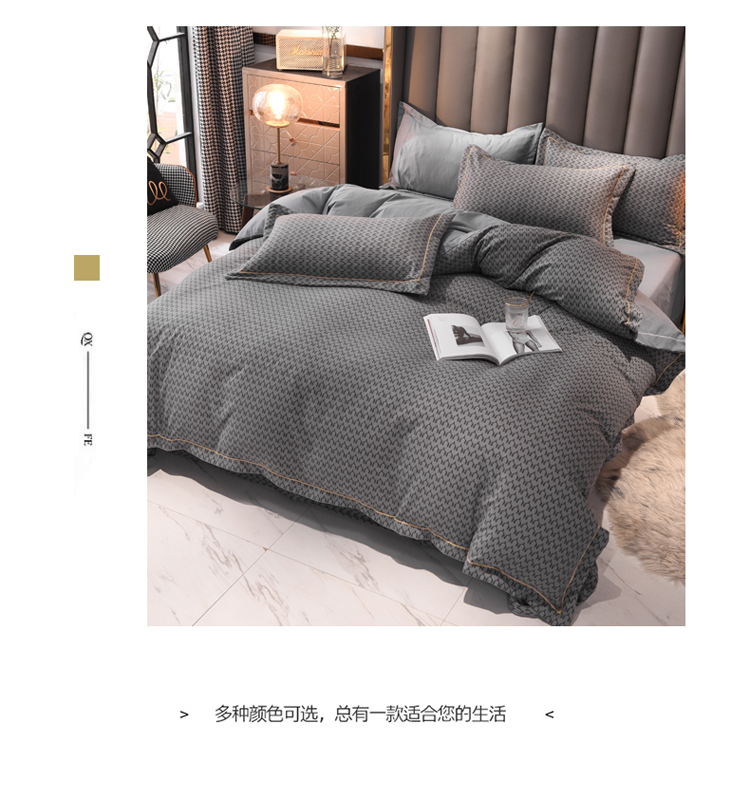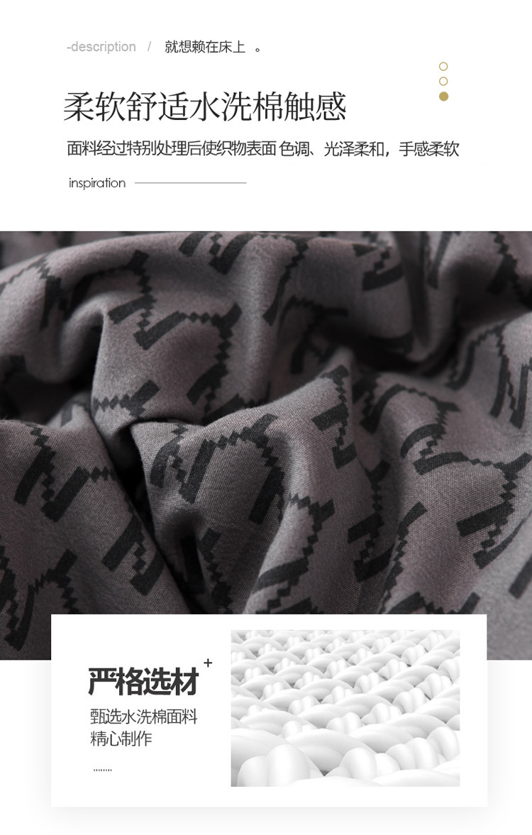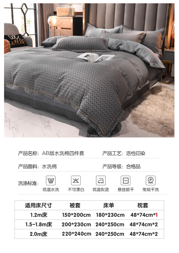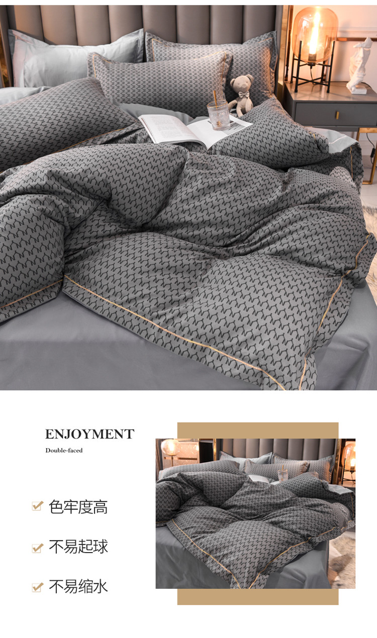 商品名称:绒世界 2021新款水洗棉印花千鸟格四件套 高级灰