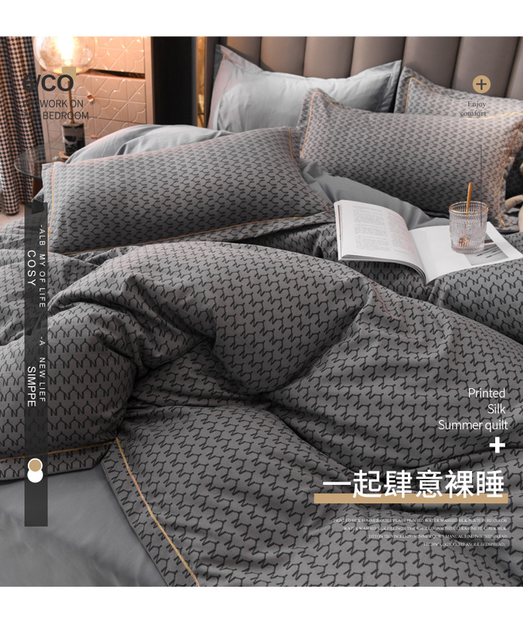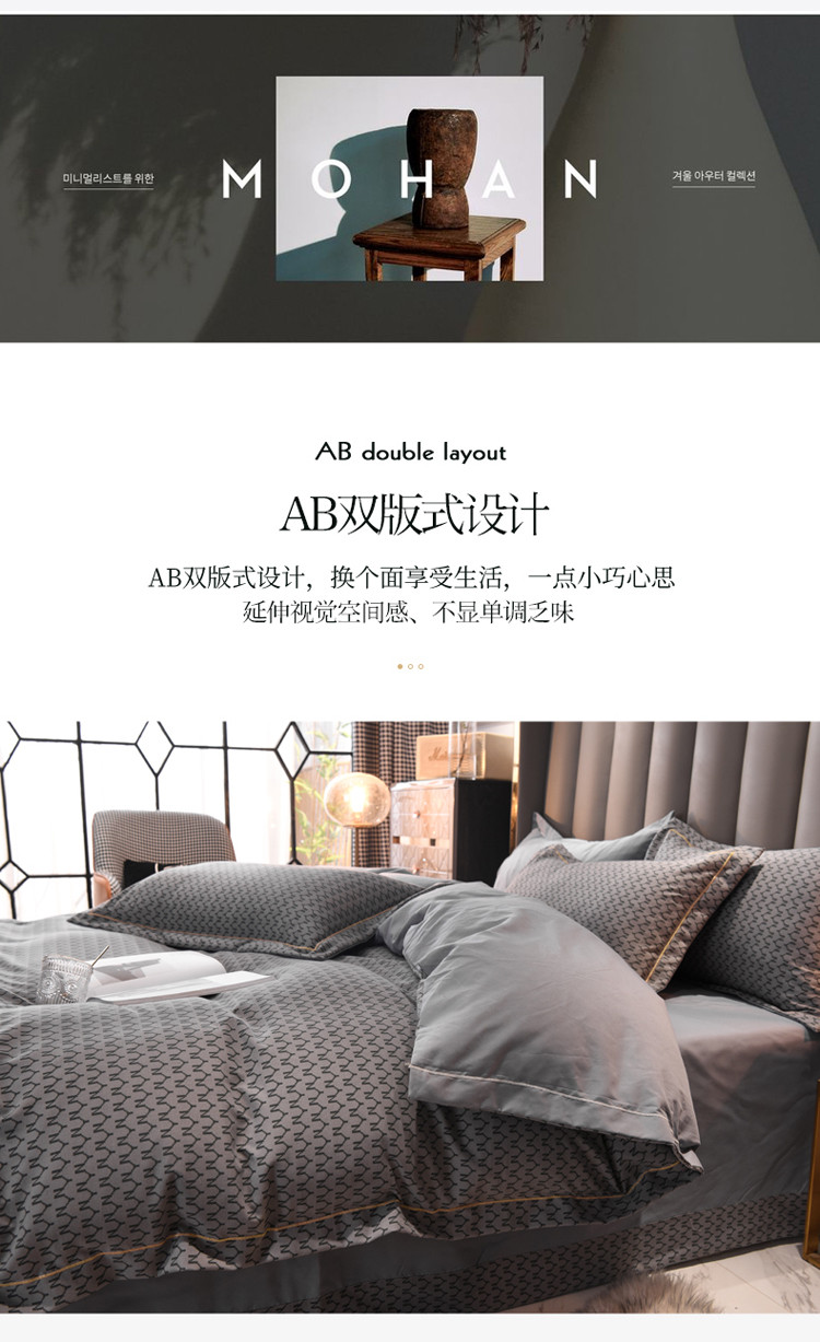 绒世界 2021新款水洗棉印花千鸟格四件套 高级灰