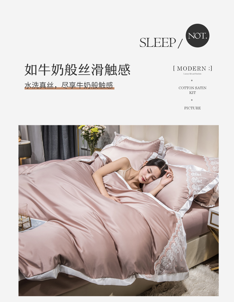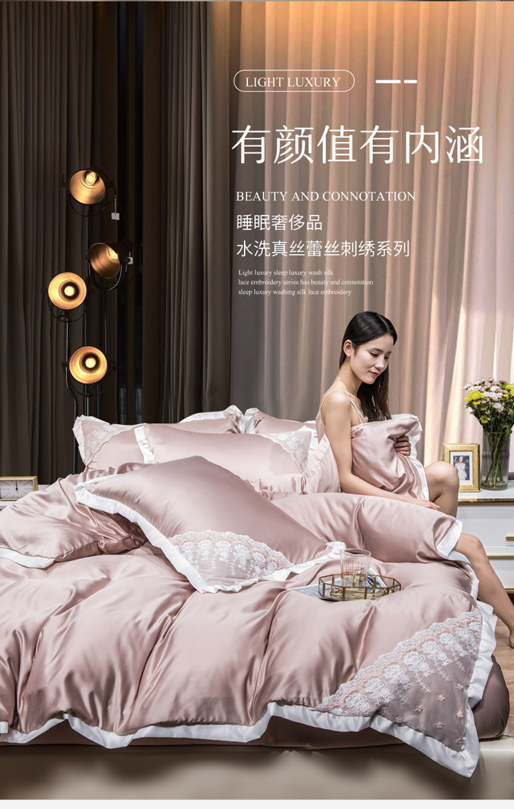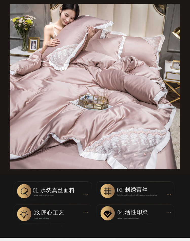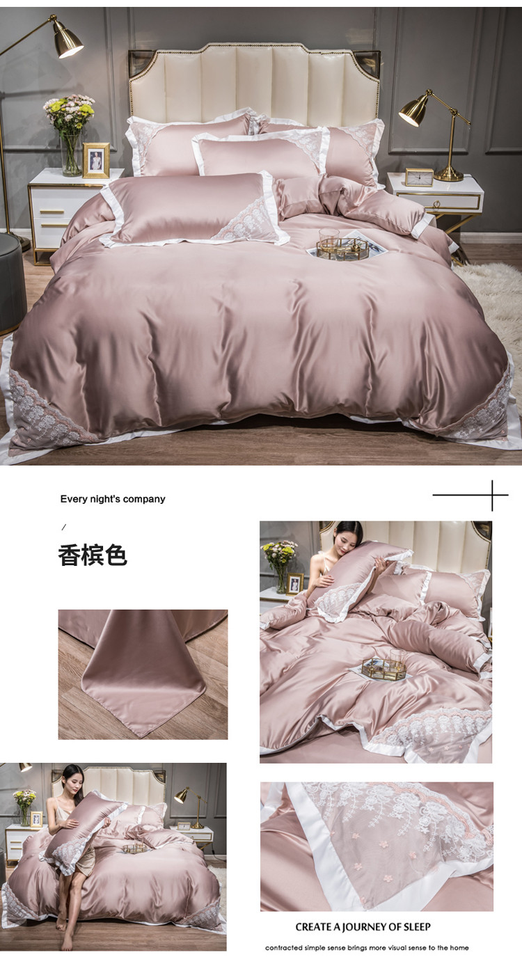 商品名称:绒世界 2021新款水洗真丝公主四件套 香槟色