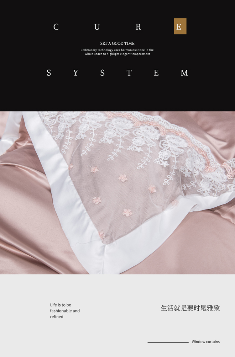 绒世界 2021新款水洗真丝公主四件套 香槟色