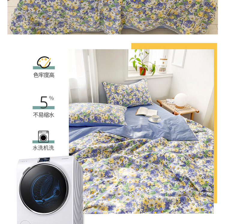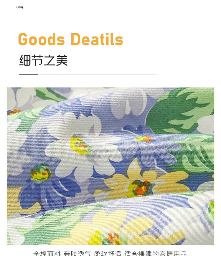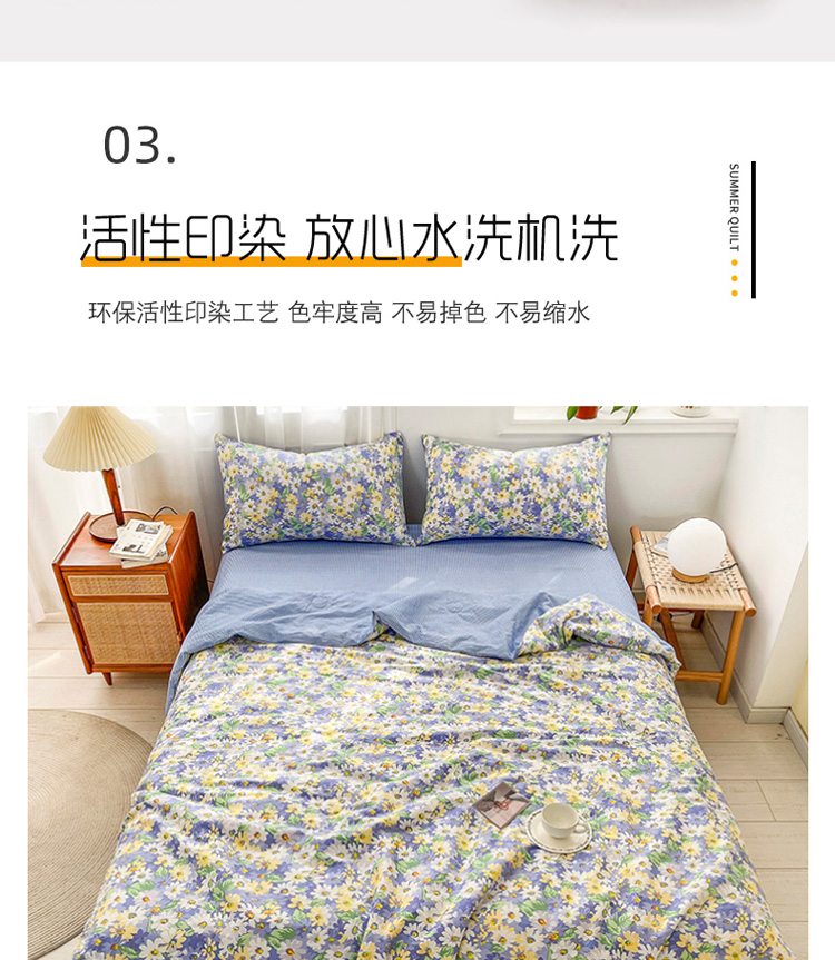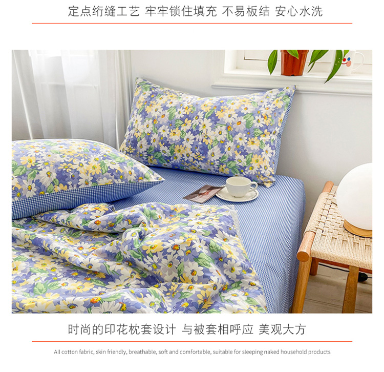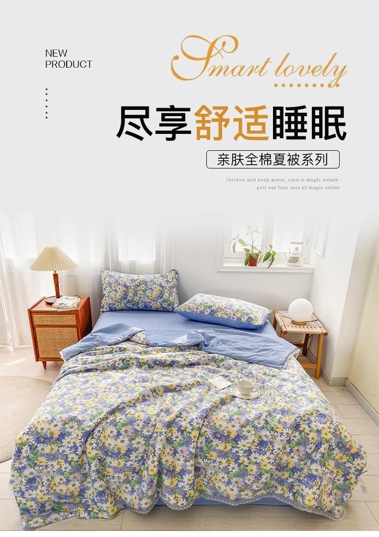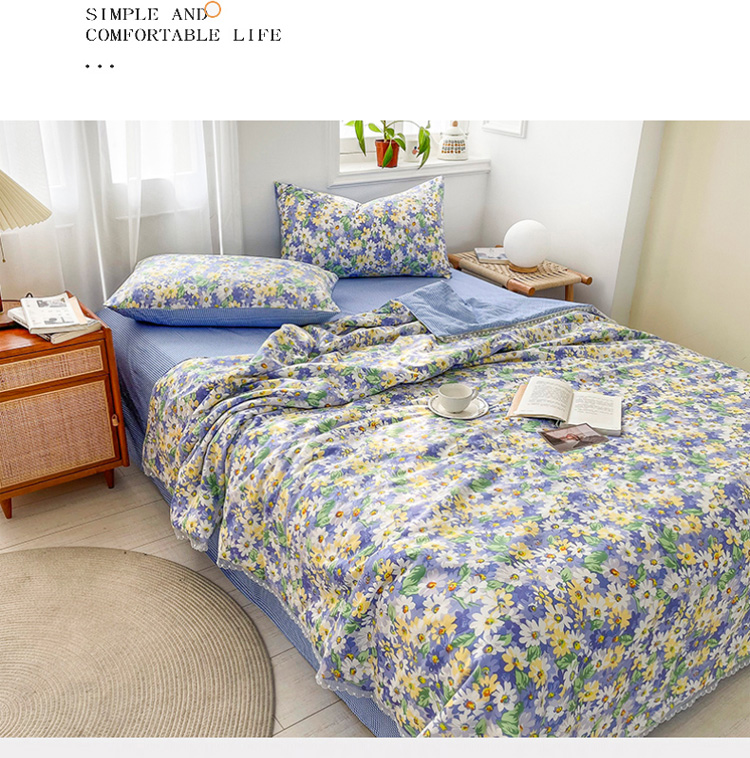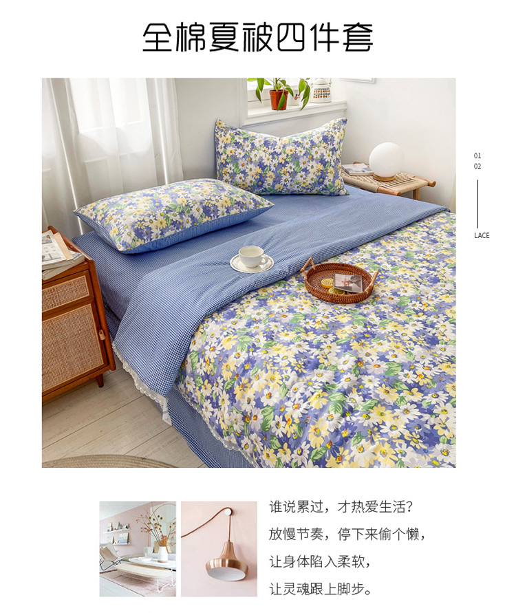 • 91家纺网 家纺一手货源 找家纺 寐居家纺 2021新款13370全棉夏被四件套 花海-蓝