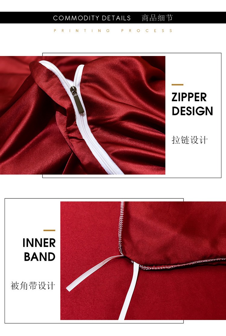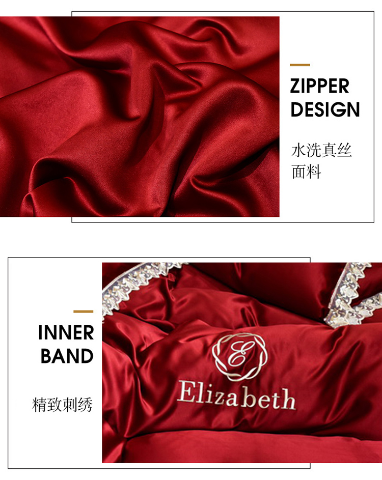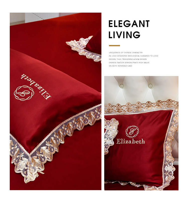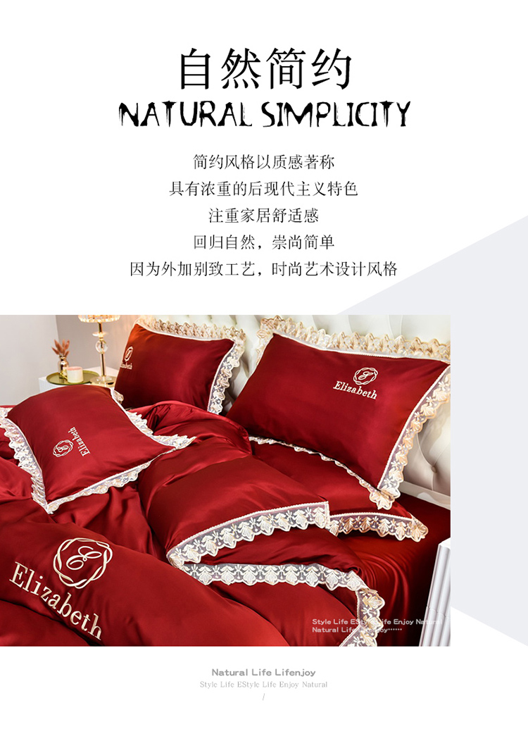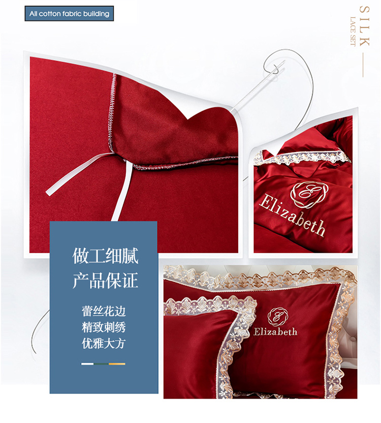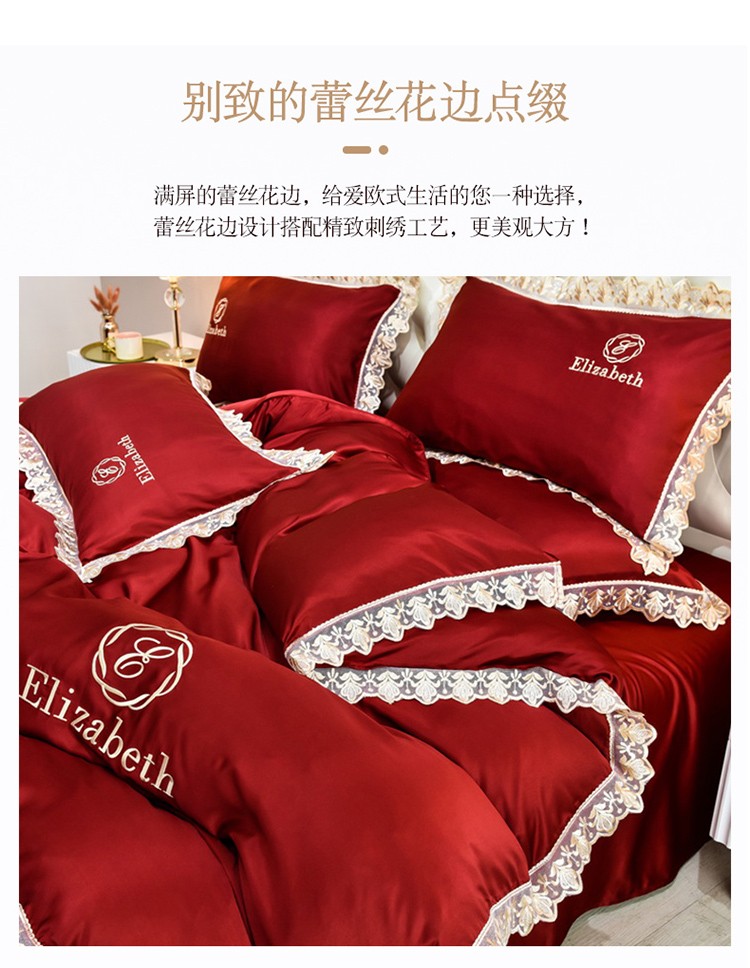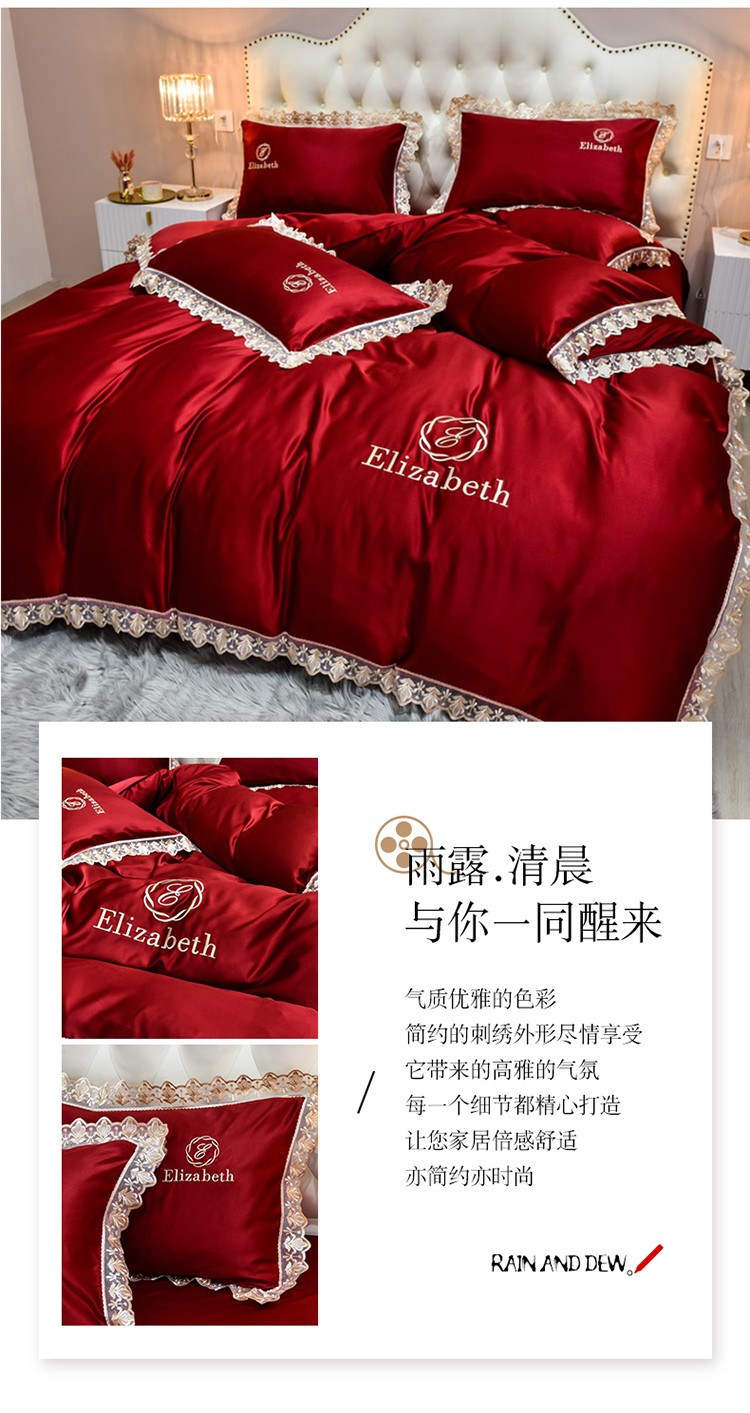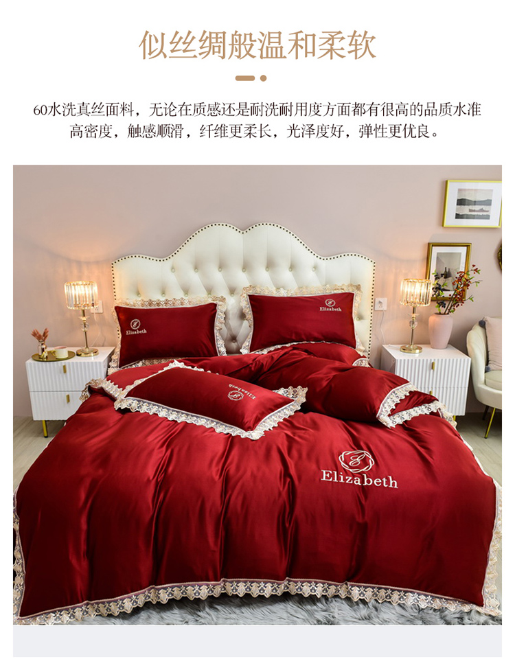 米奈家居 2021新款水洗真丝蕾丝花边爱琳四件套 大红