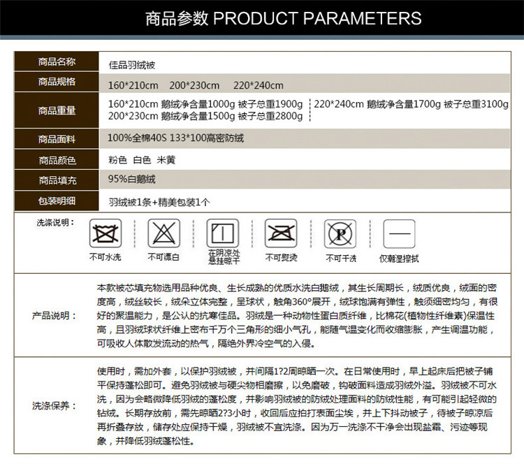 商品名称:晋瑞 2021新款佳品羽绒被 白