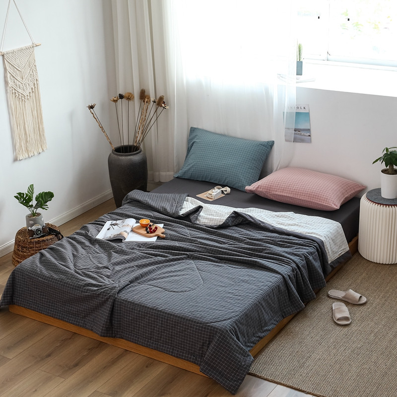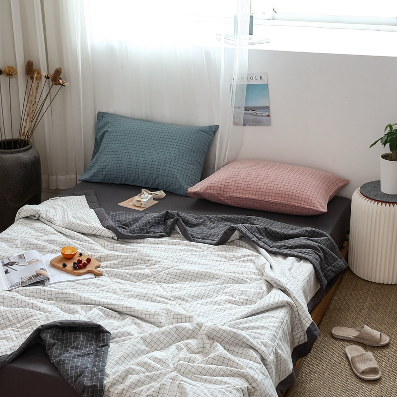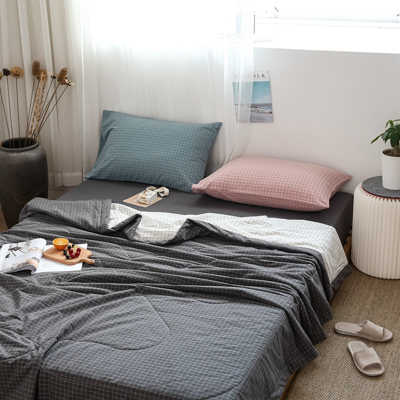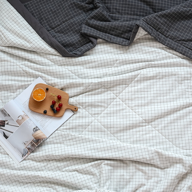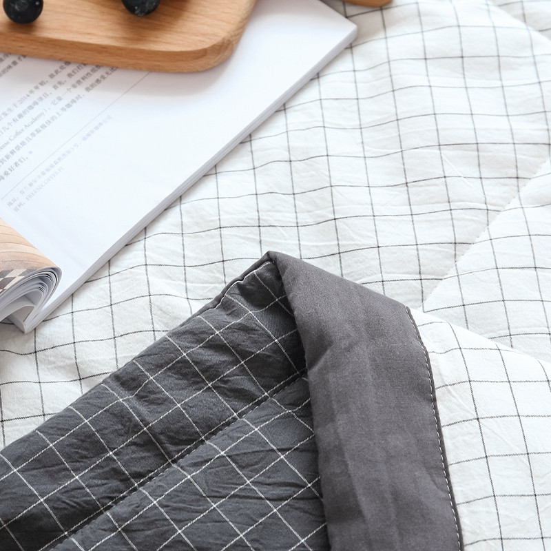 安莱生活 2021新款双拼小格细条中格夏被 小灰格+小白格