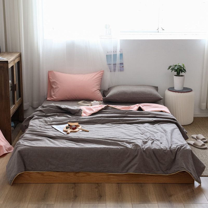 商品名称:安莱生活 2021新款全棉水洗棉双拼纯色夏被 纯粉+浅灰