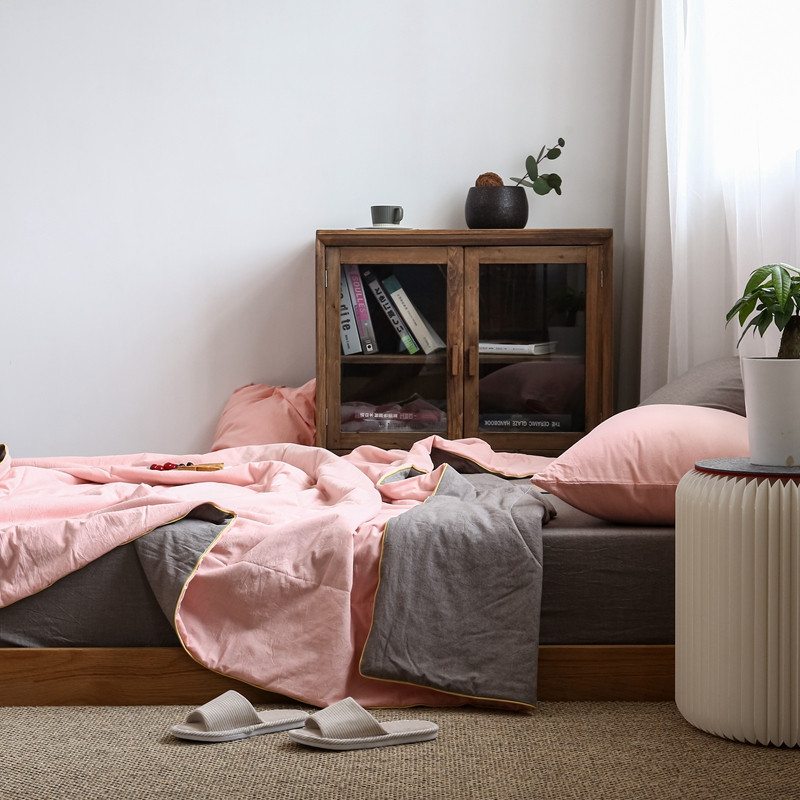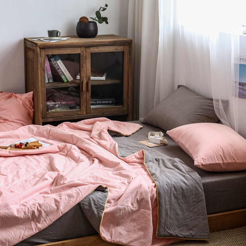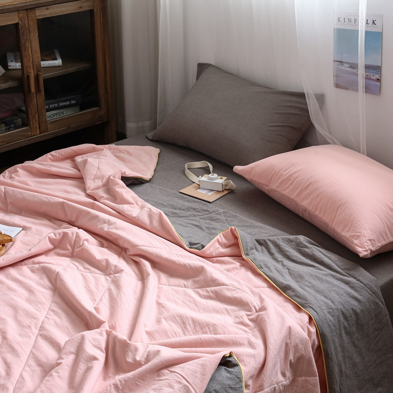 安莱生活 2021新款全棉水洗棉双拼纯色夏被 纯粉+浅灰