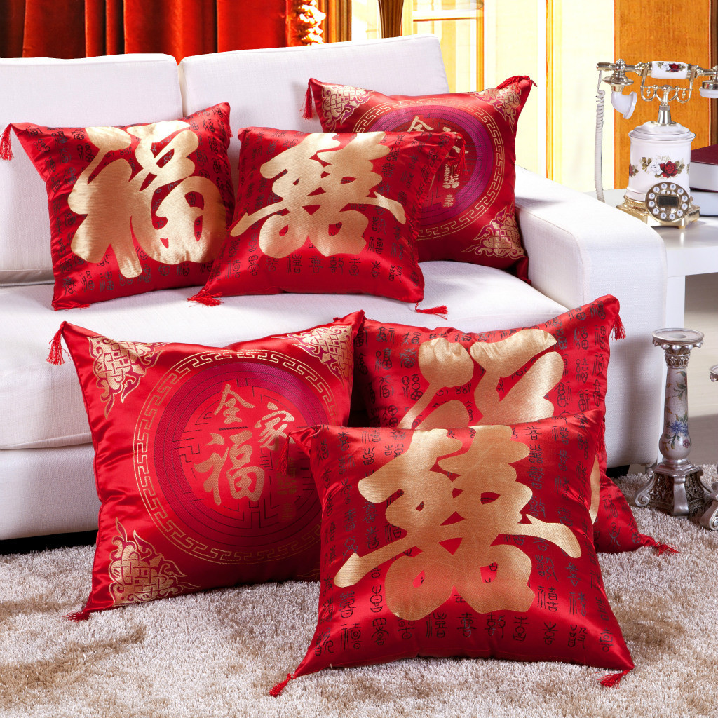 (总)新款婚庆抱枕大红色抱枕赠品绸缎抱枕套新婚抱枕一件代发,百年好合双喜,百子纳福,春,大福,大喜,发,方福,恭喜发财,吉祥如意福,金福,金童玉女,金喜,龙凤呈祥,龙凤双喜,牡丹福,全家福,小圆福,招财进宝,中福