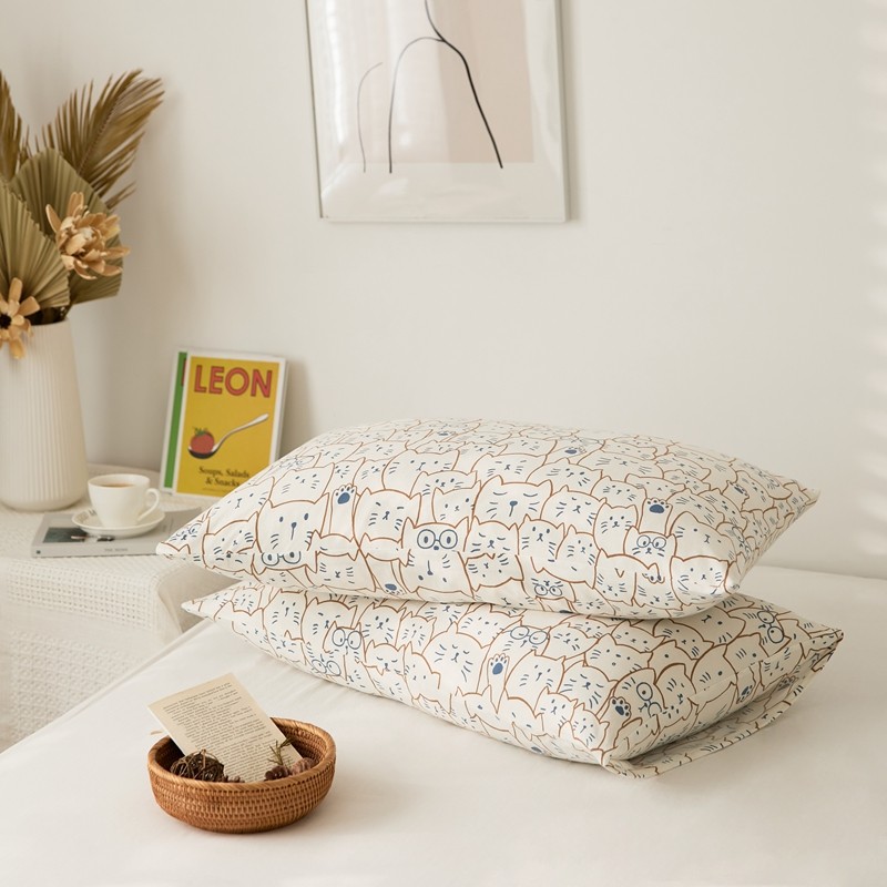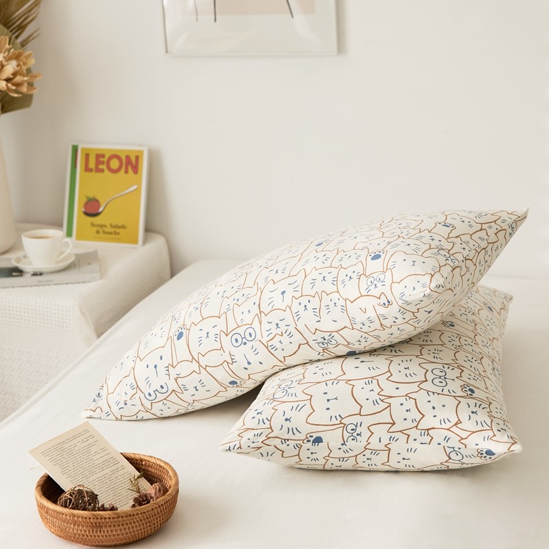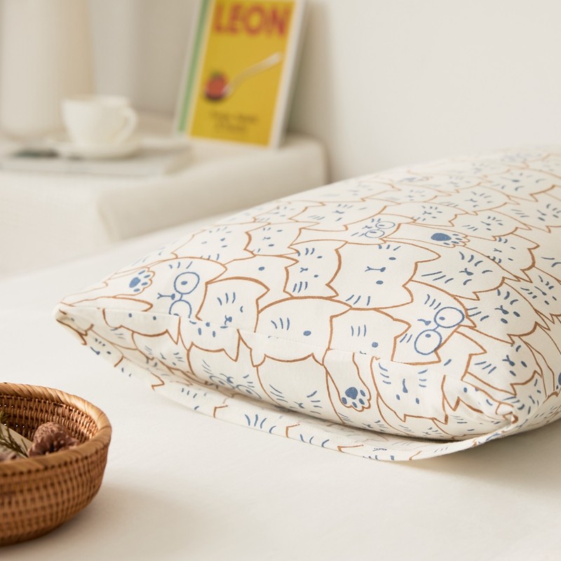 • 91家纺网 家纺一手货源 找家纺 原研家居 新款kinfolk原研针织棉印花单枕套 猫咪米