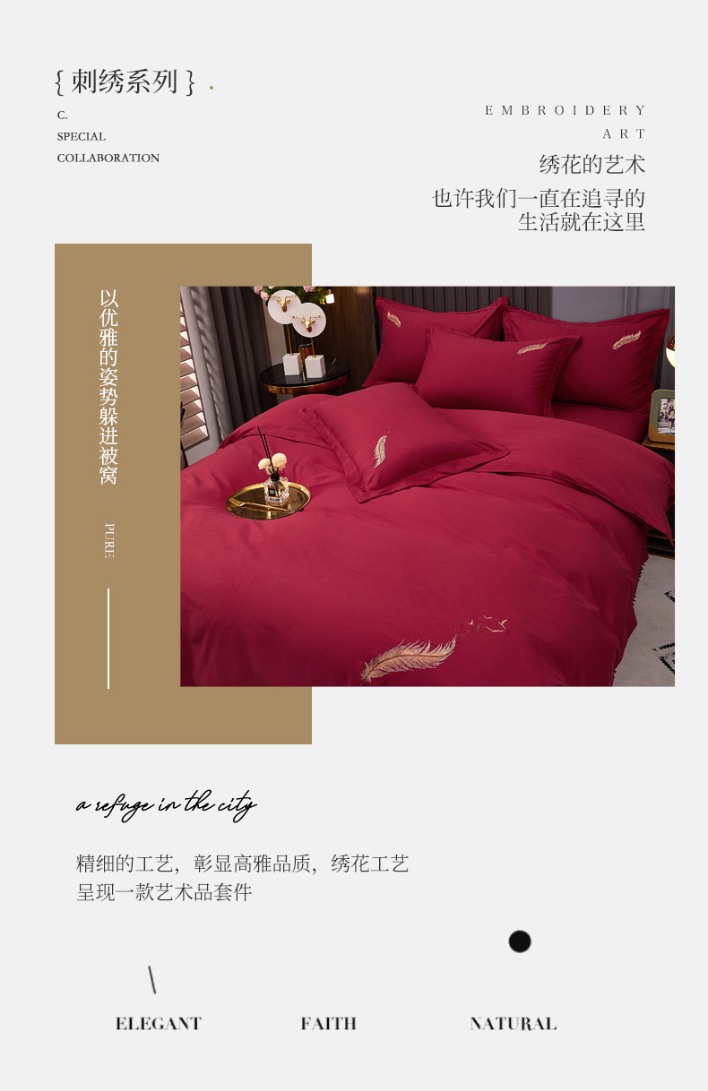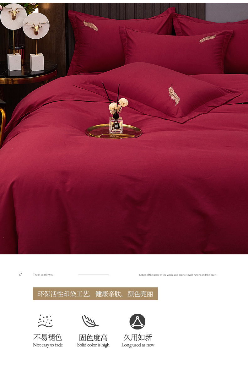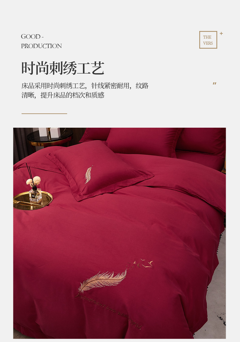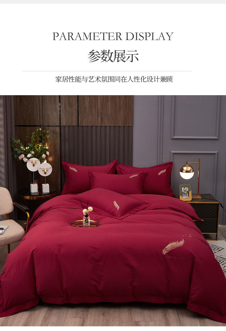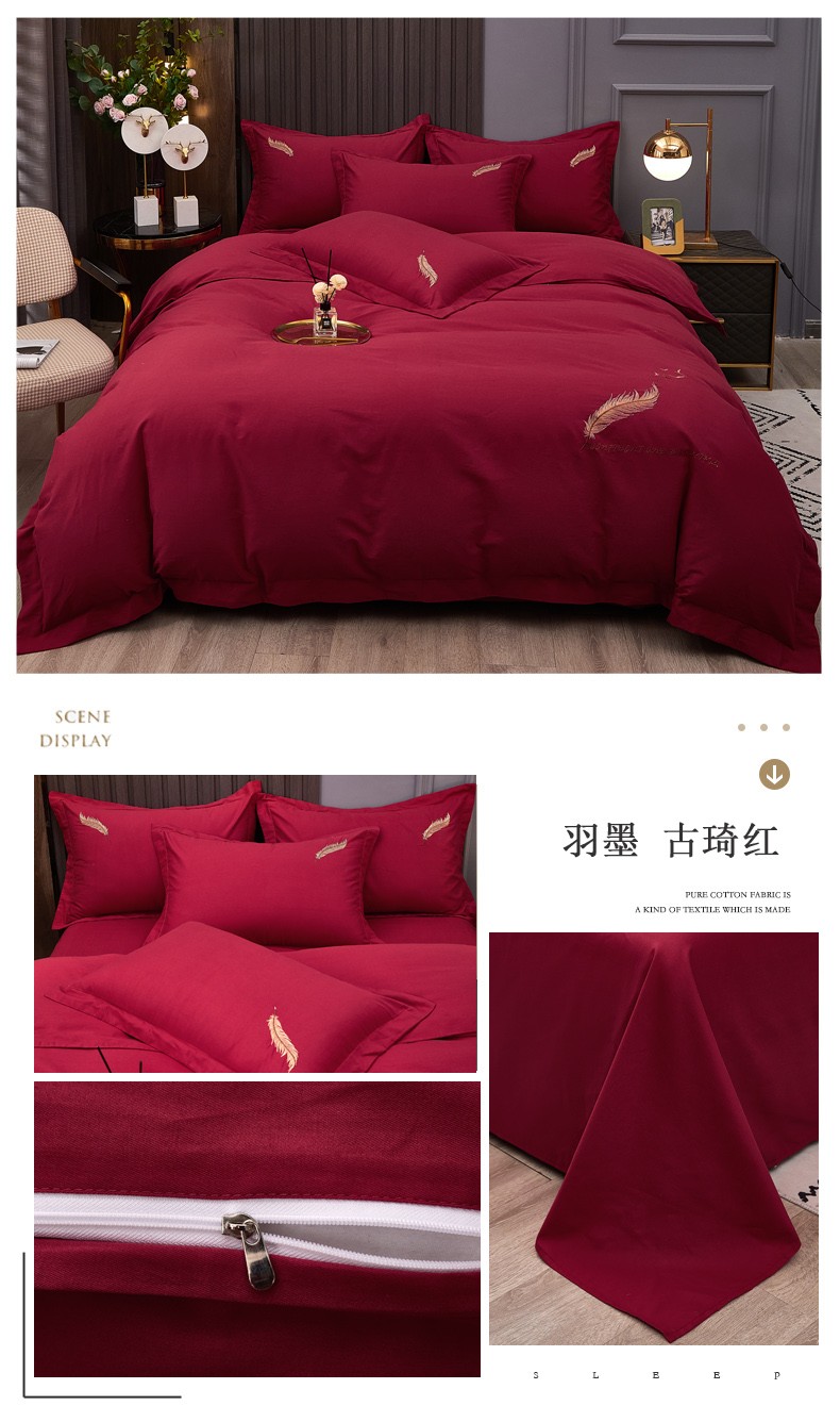 商品名称:芊寻 2024新款60支全棉磨毛绣花四件套 羽墨 古琦红