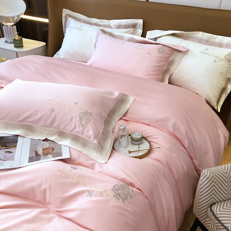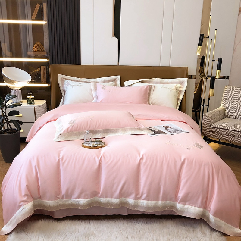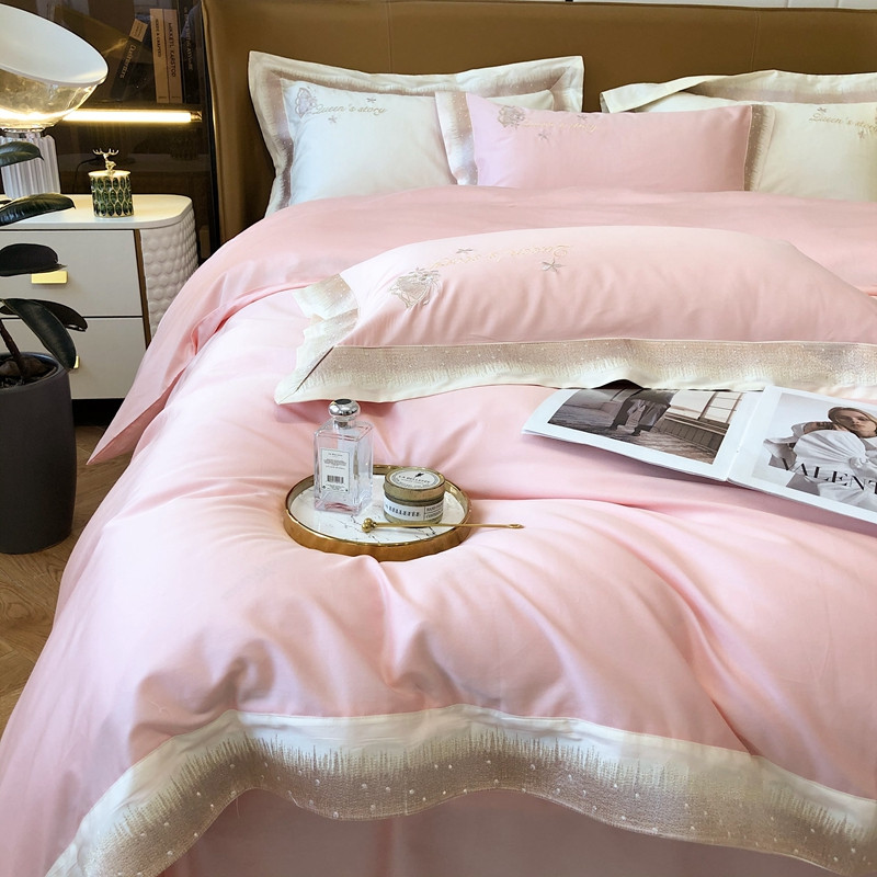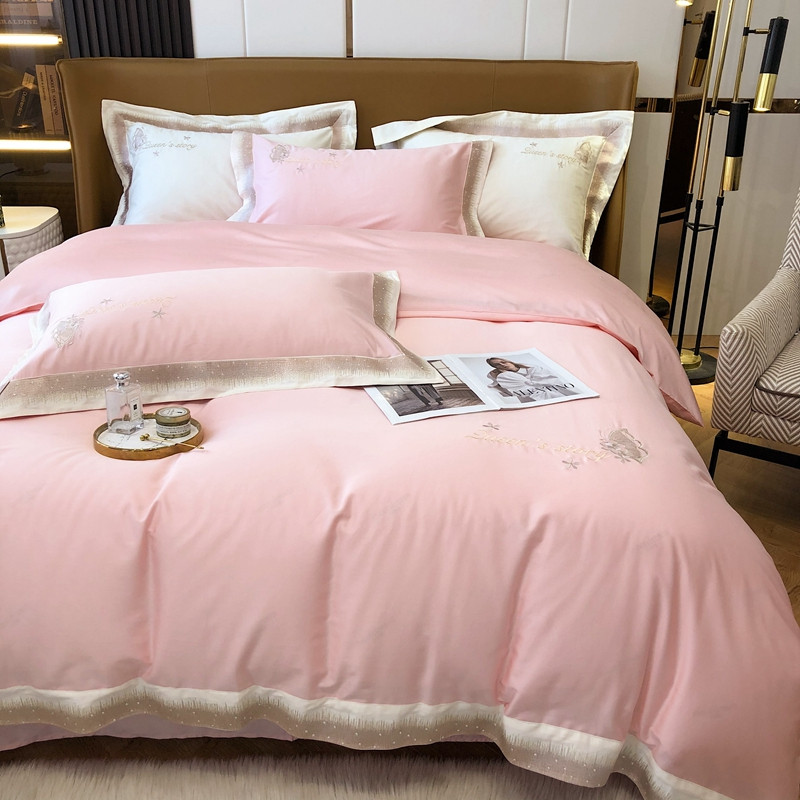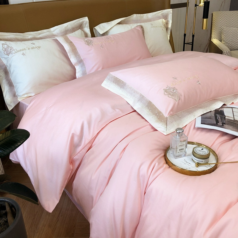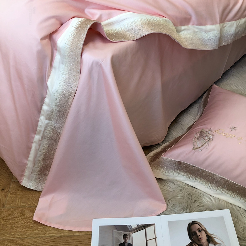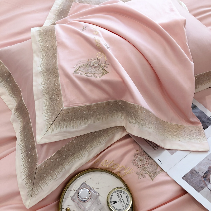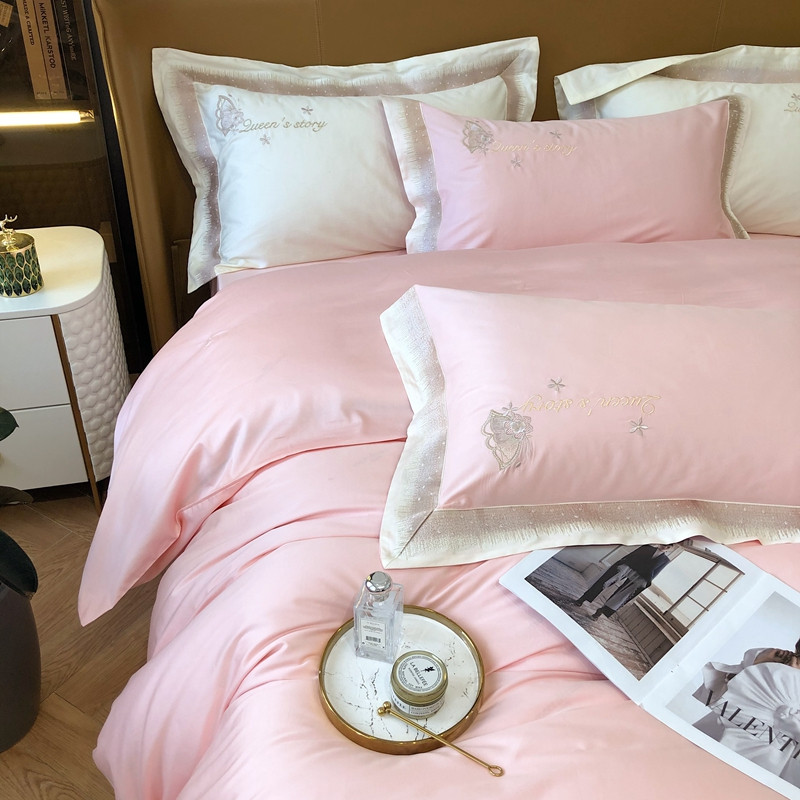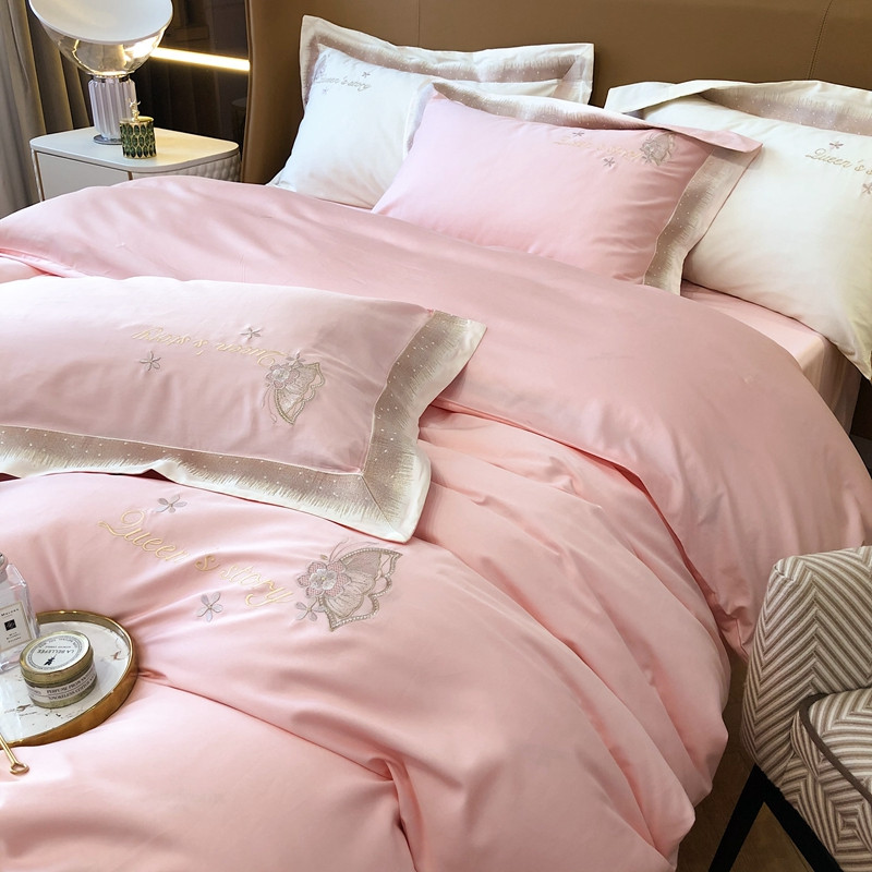 商品名称:馨蕊2021秋冬新品100支澳棉四件套高定系列 蝶恋-柔雾粉