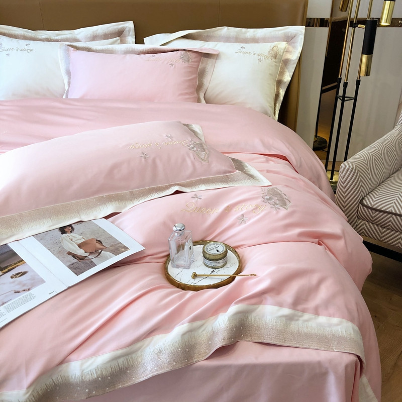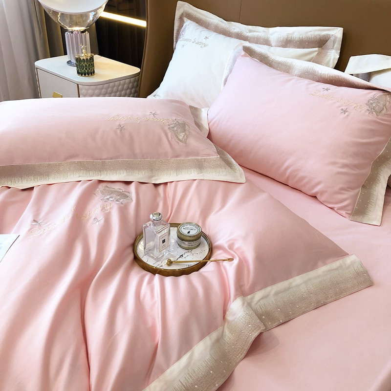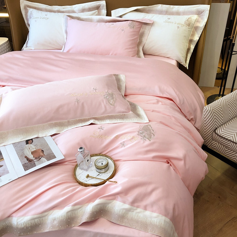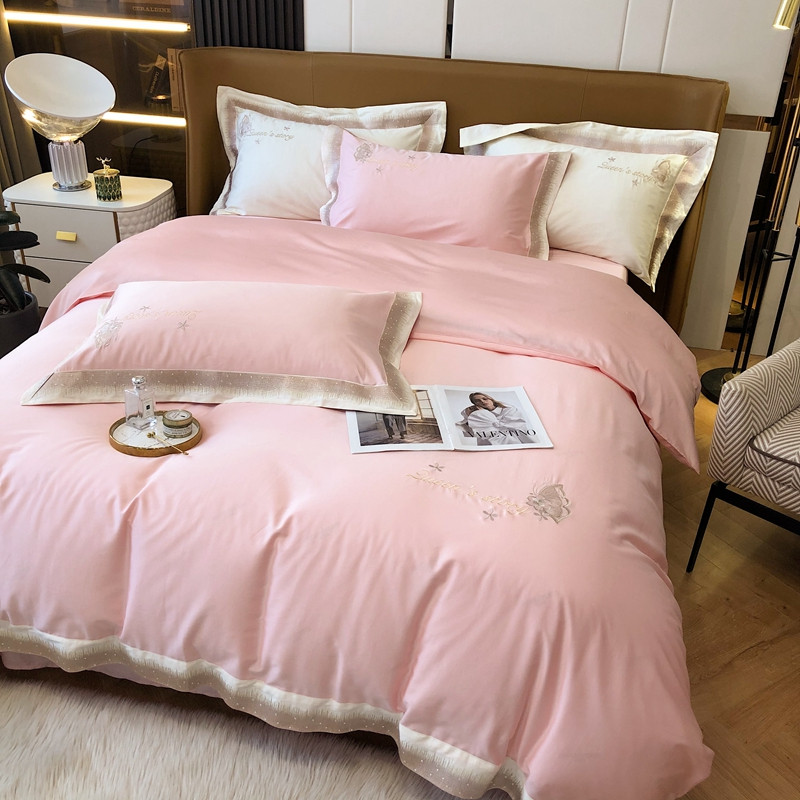 馨蕊2021秋冬新品100支澳棉四件套高定系列 蝶恋-柔雾粉