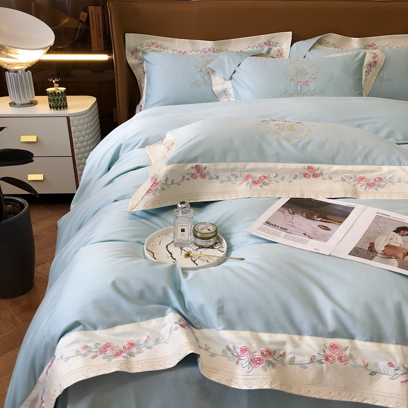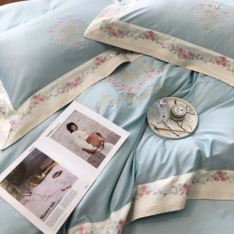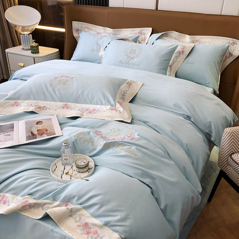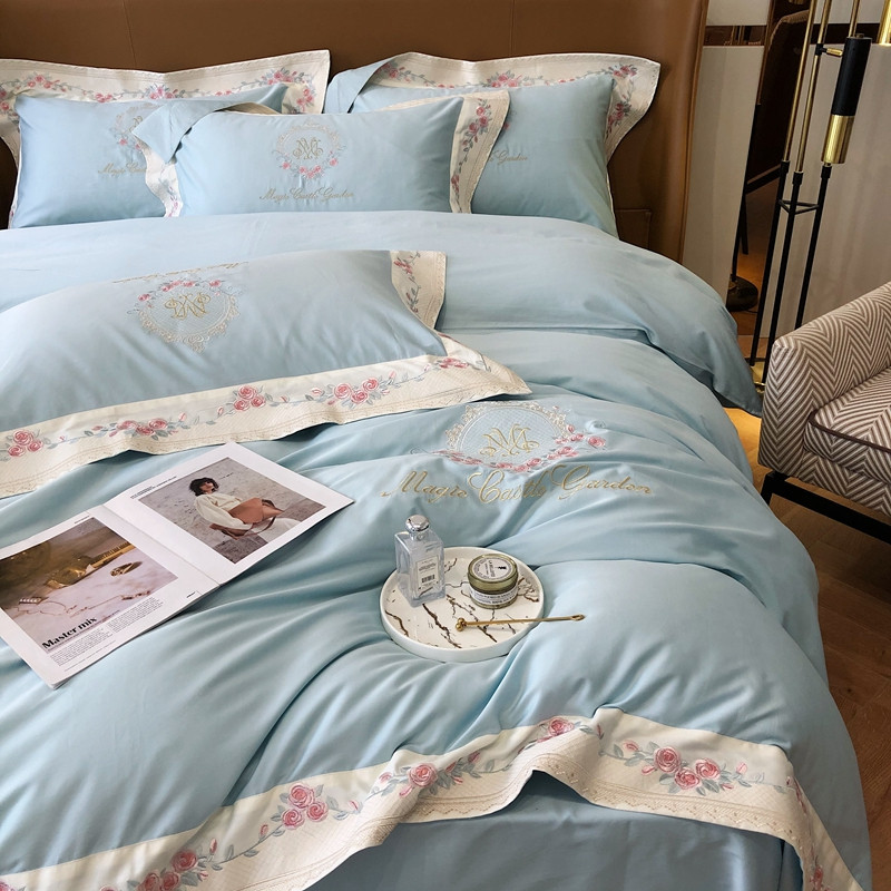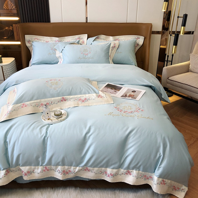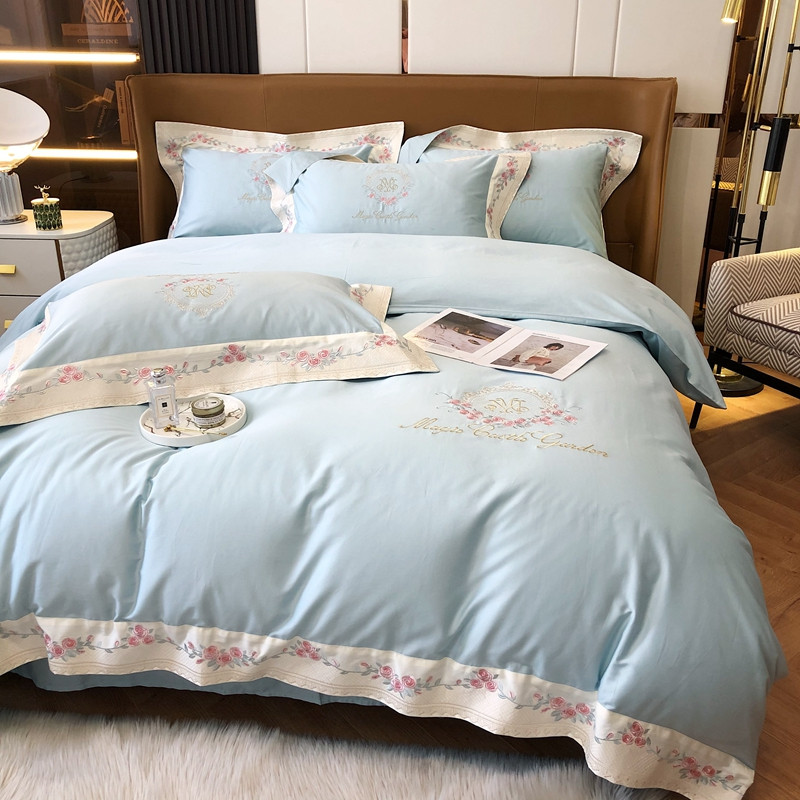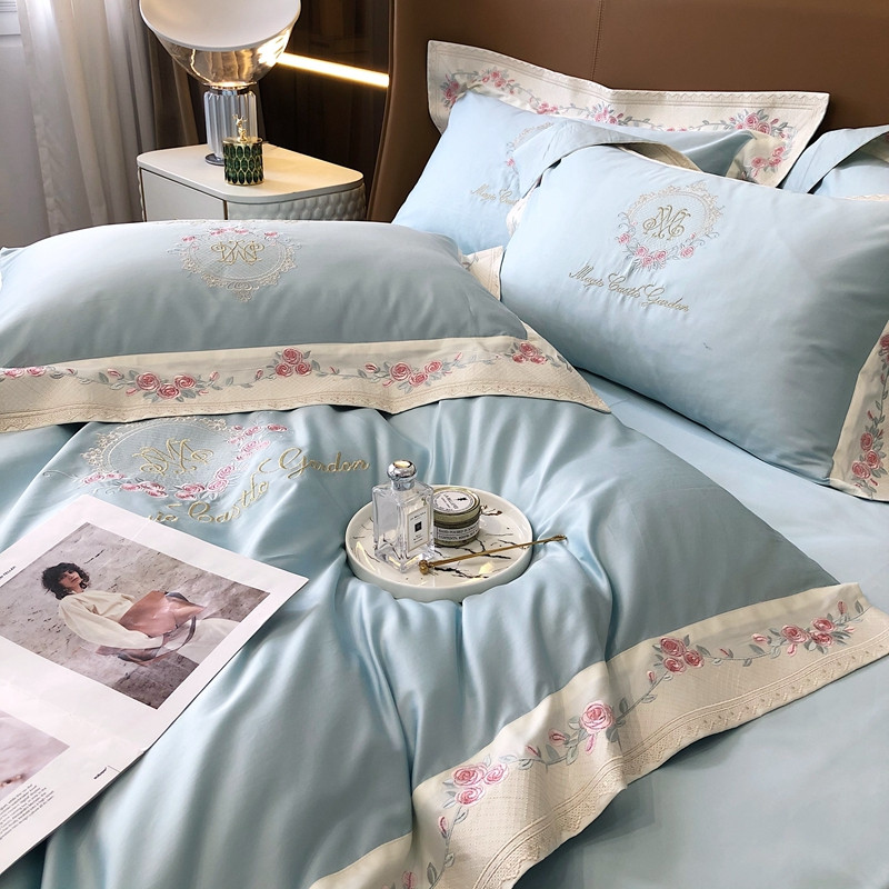 商品名称:馨蕊 2021秋冬新品100支澳棉四件套高定系列 梦露 梦露-湖水蓝