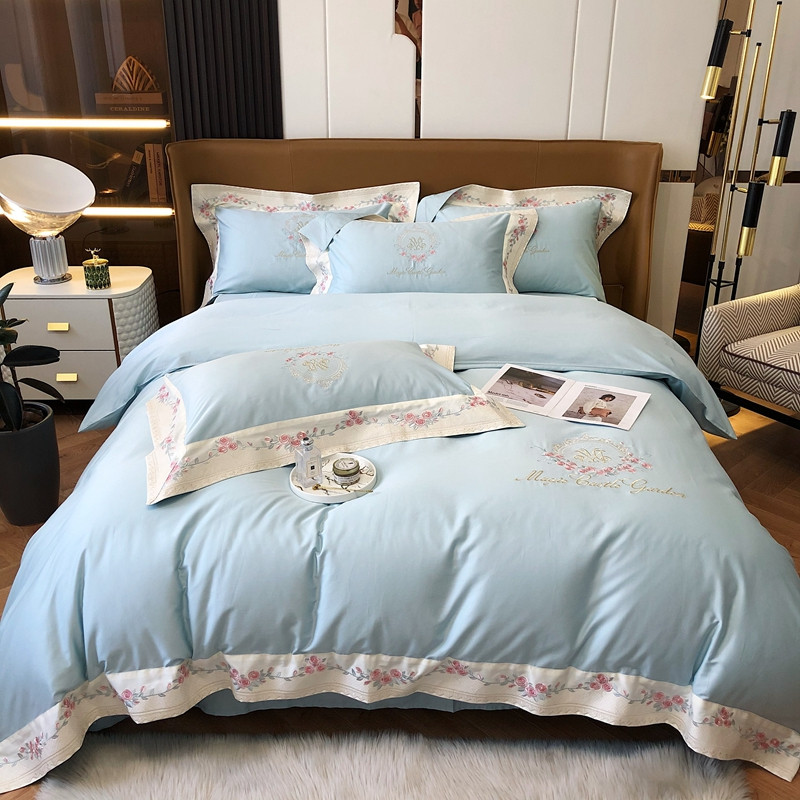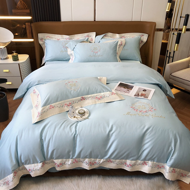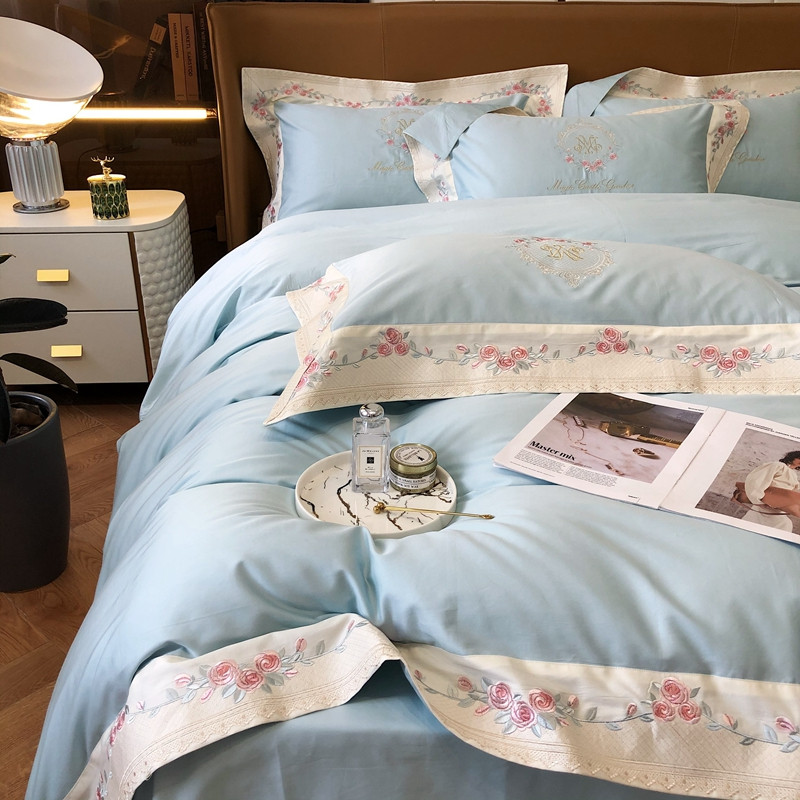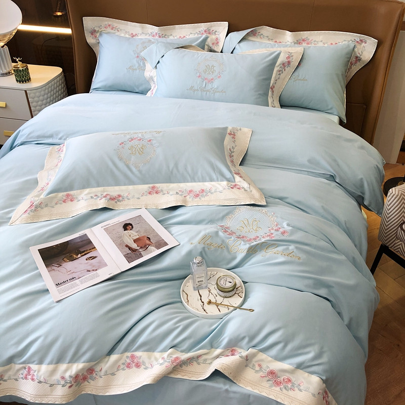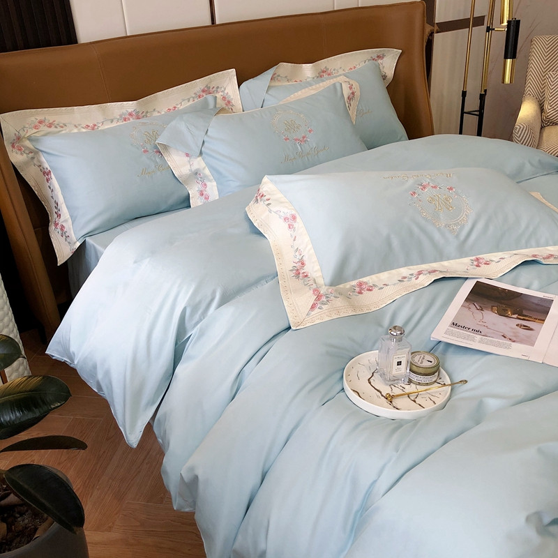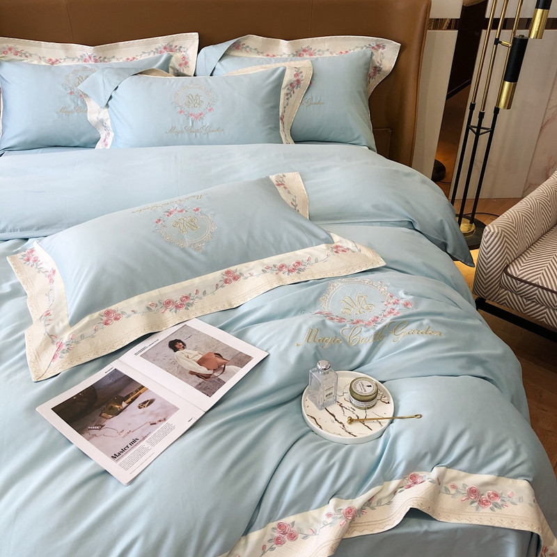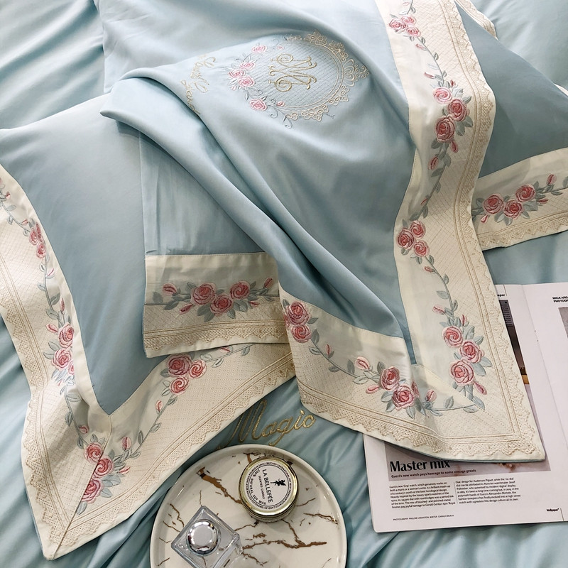 商品名称:馨蕊 2021秋冬新品100支澳棉四件套高定系列 梦露 梦露-湖水蓝