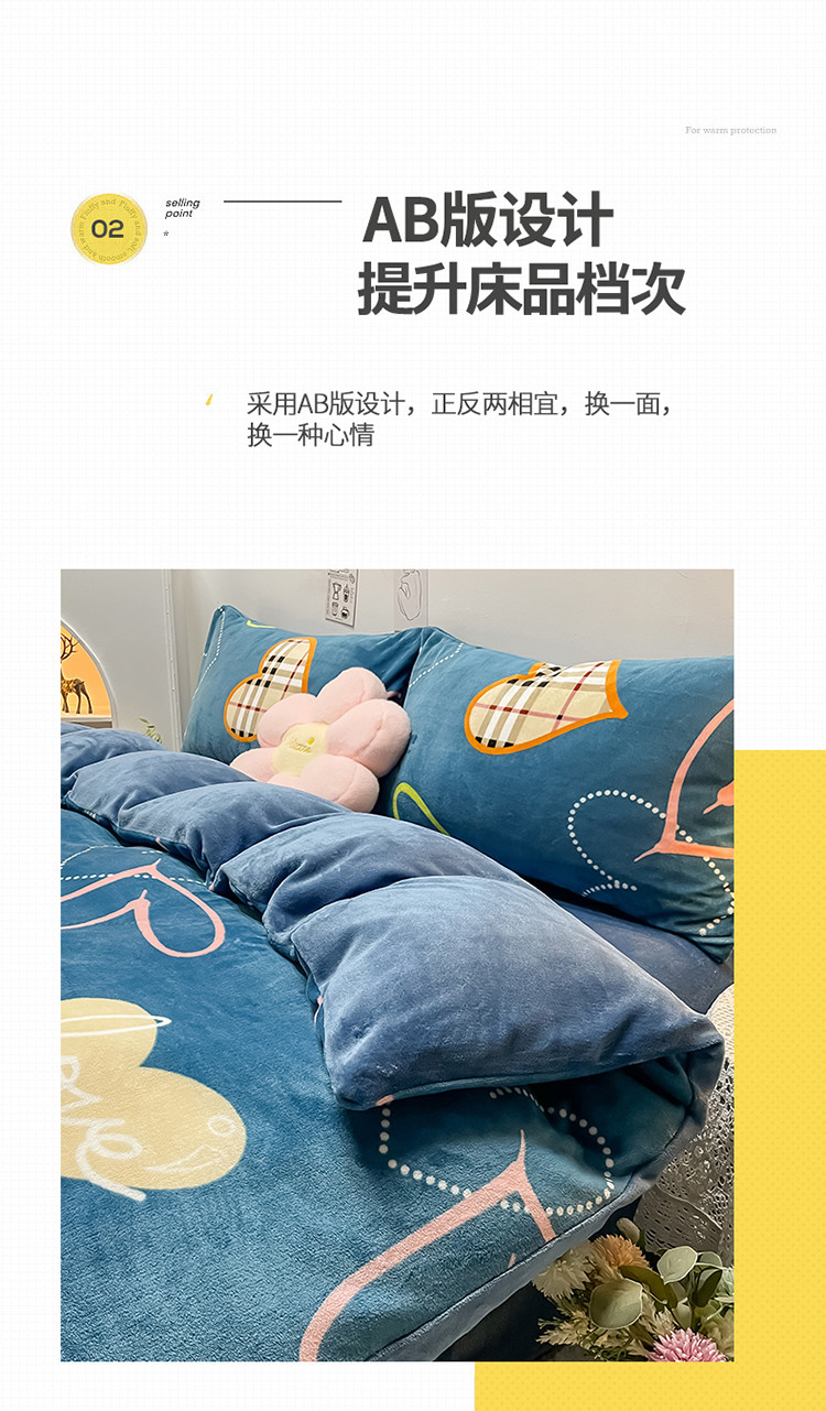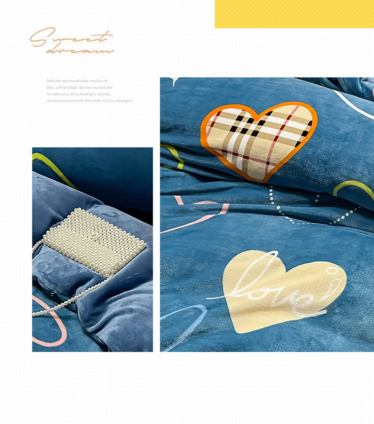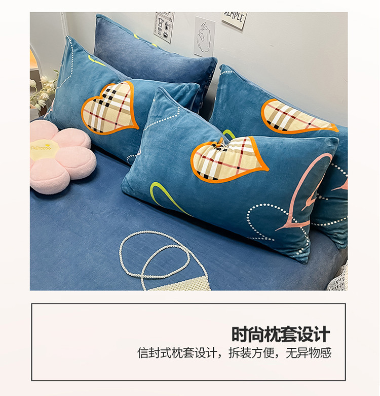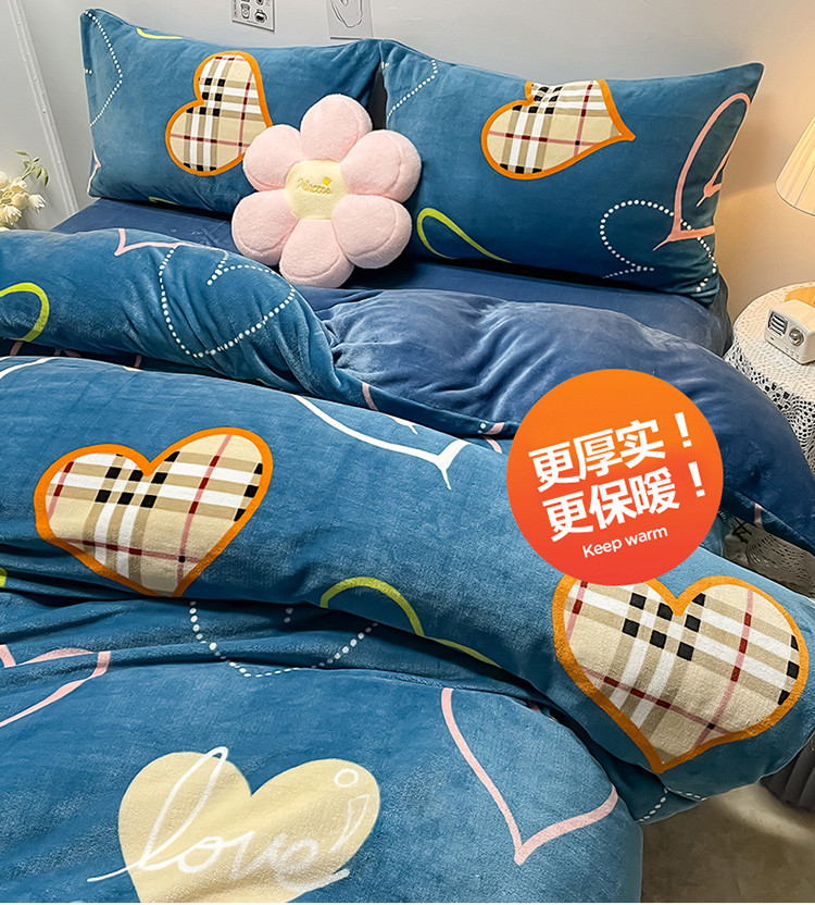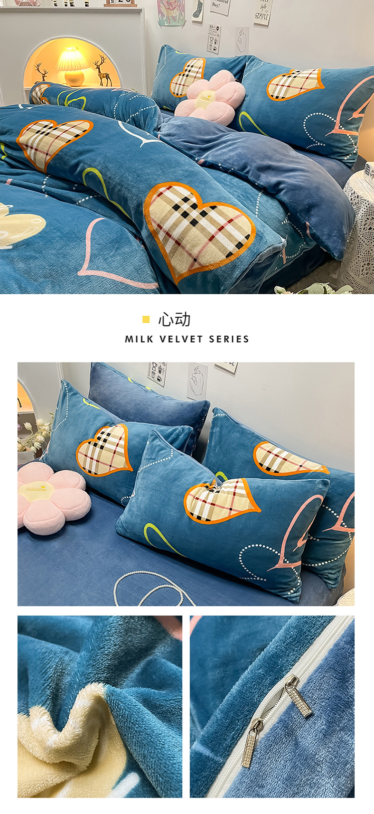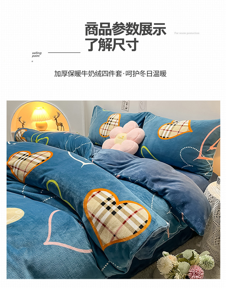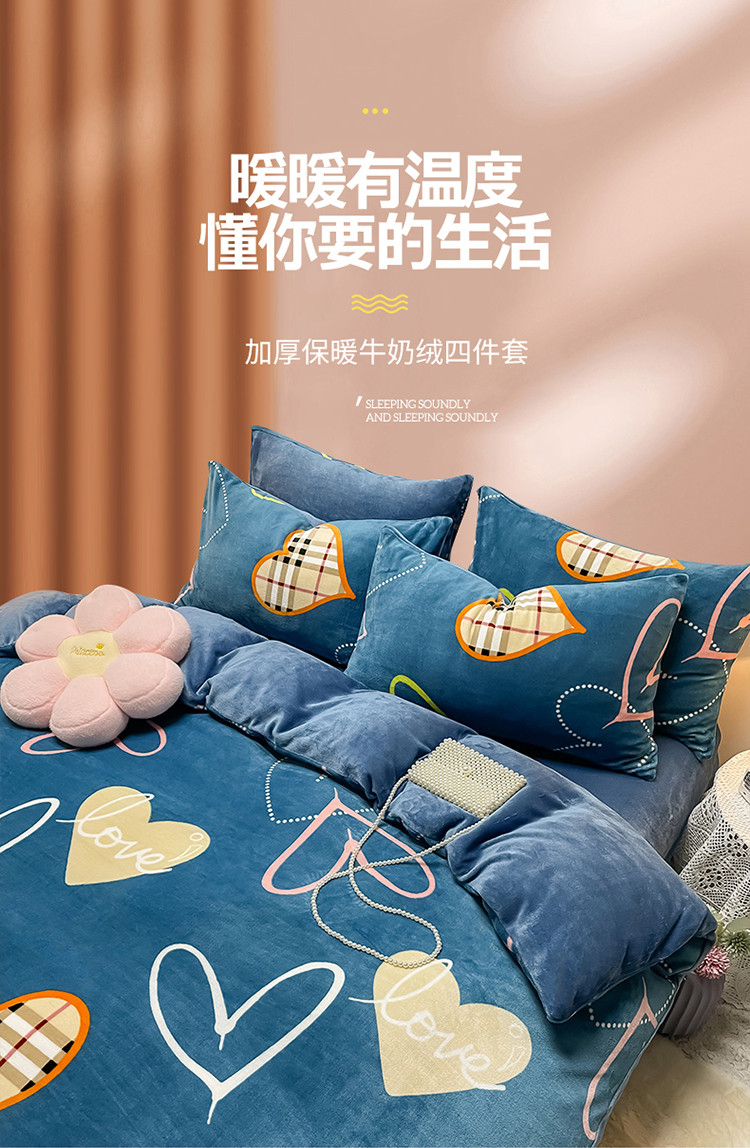 商品名称:芃成家纺 2021新款牛奶绒印花四件套 心动