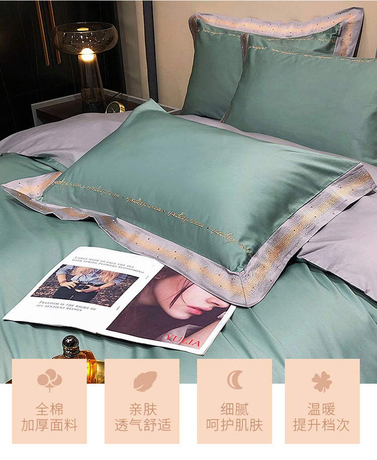 爱缦 2021新款星空系列100支长绒棉奥棉四件套 韩黛绿