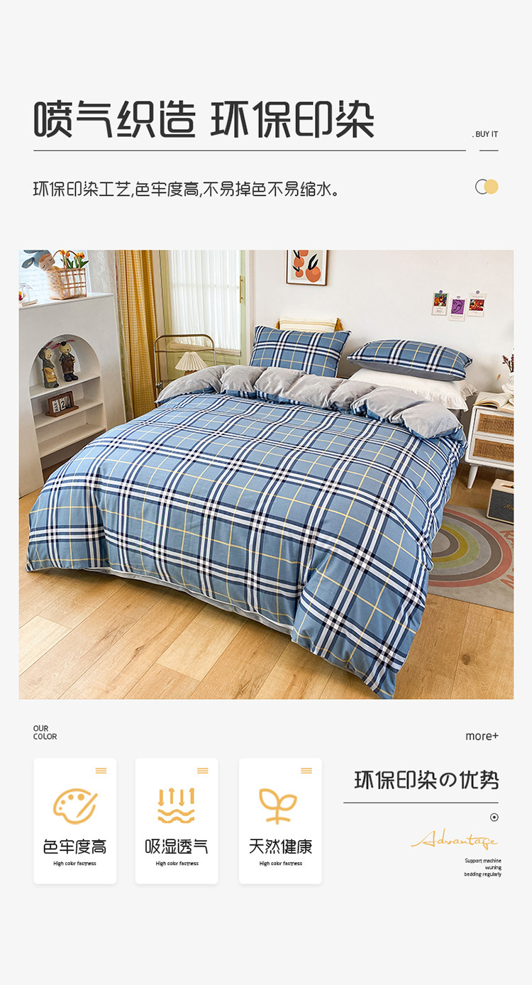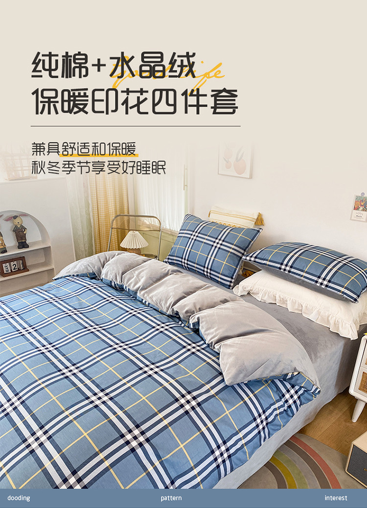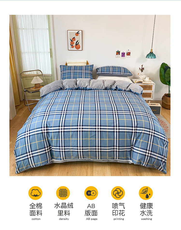 珺柔家纺2021新款全棉印花水晶绒四件套灰格子PPP