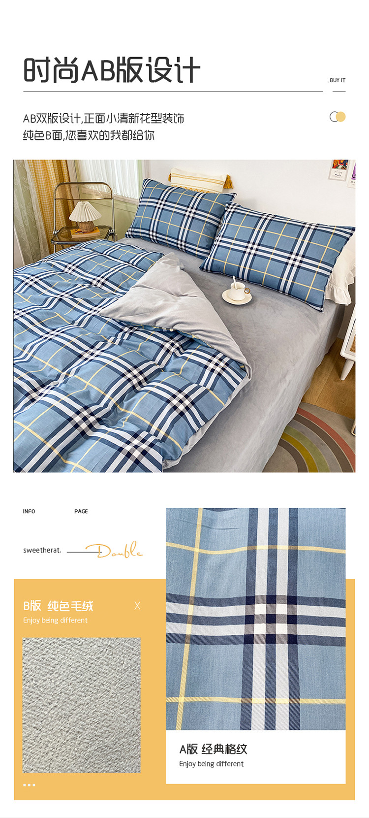 (总)2023新款40支纱全棉13070锁边工艺款四件套系列,格子爱心,嘉兰,咖条,朗尼,小兔兔,星星兔