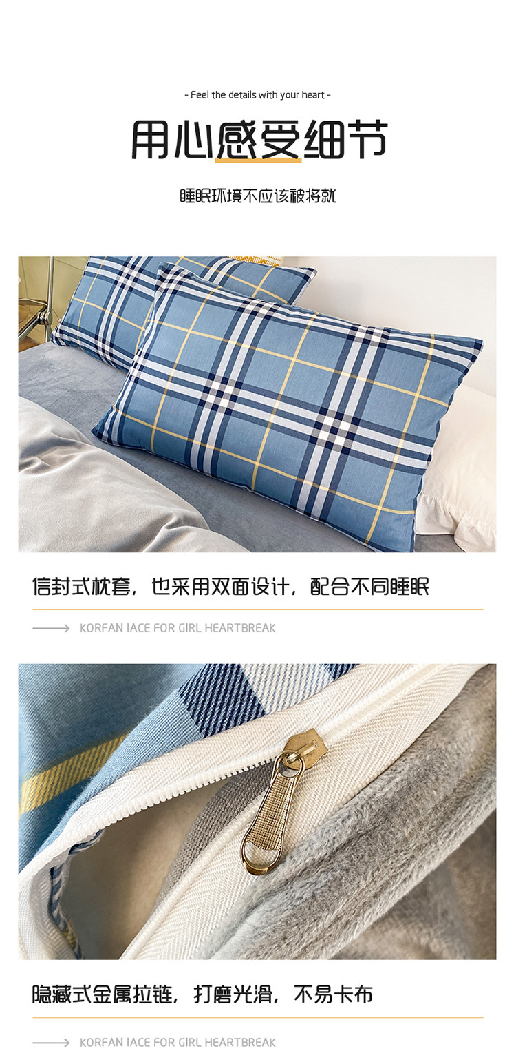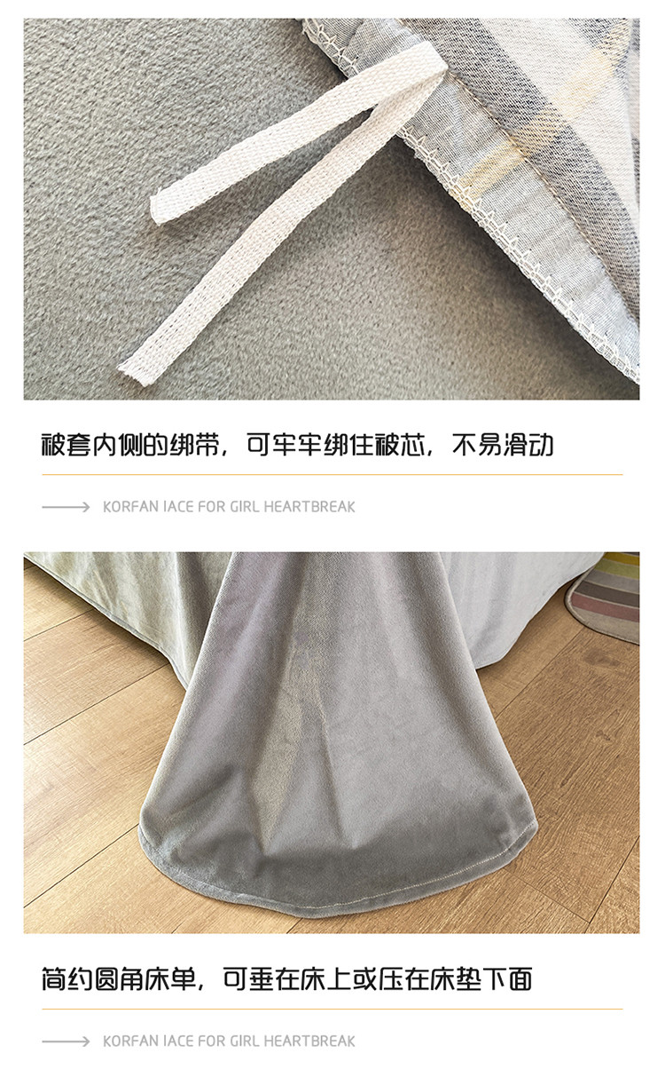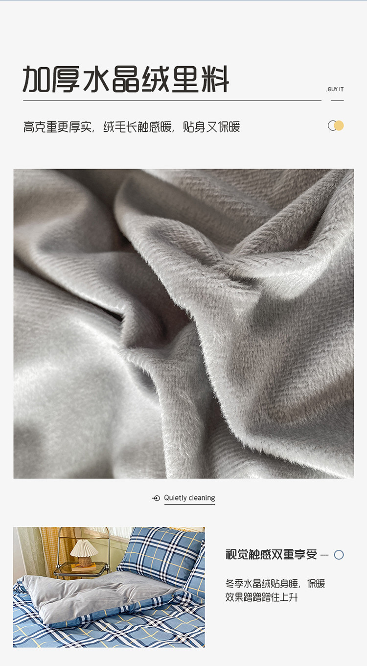 商品名称:珺柔家纺2021新款全棉印花水晶绒四件套灰格子PPP