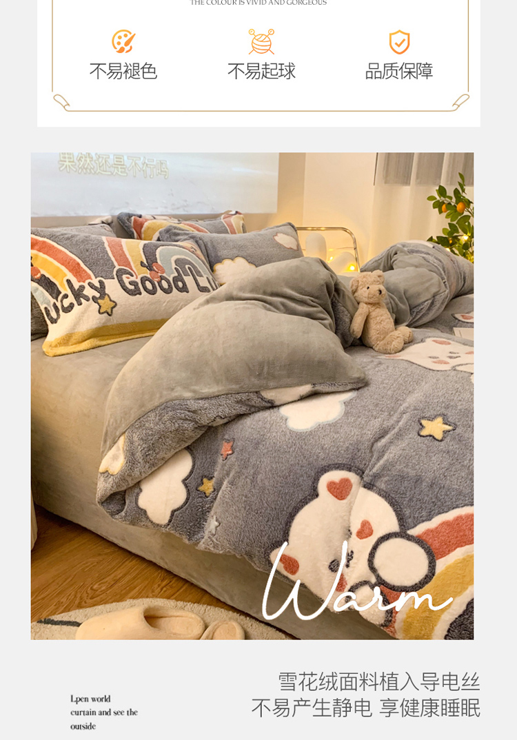 商品名称:慕尚 2022新款5D雪花绒单品被套 幸运小熊