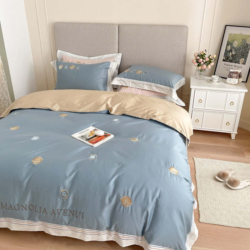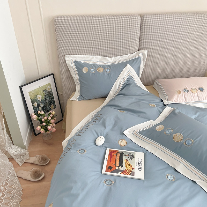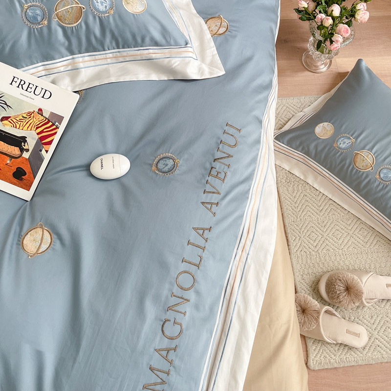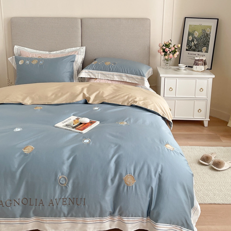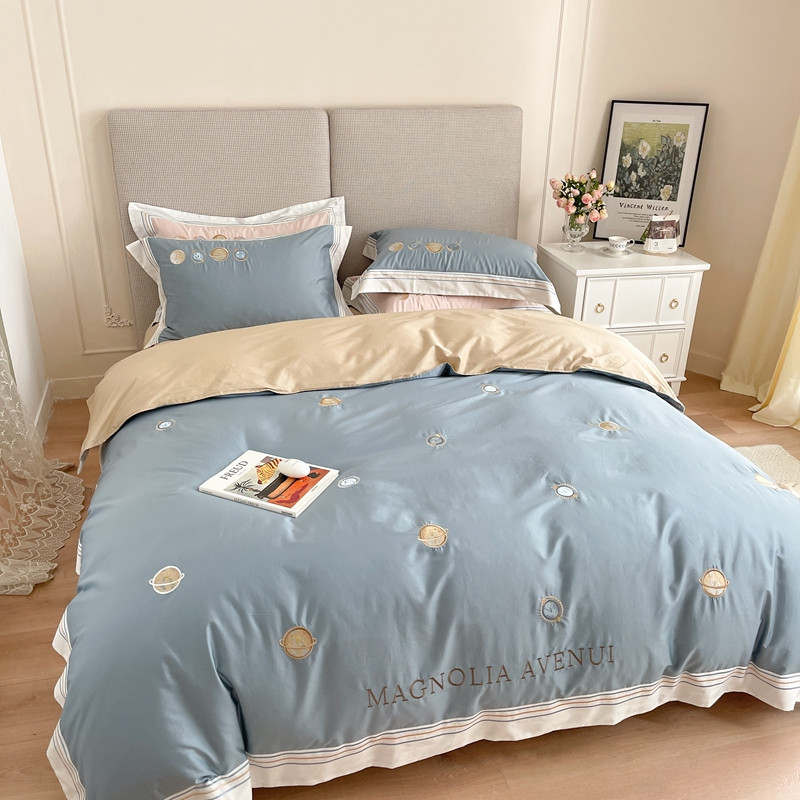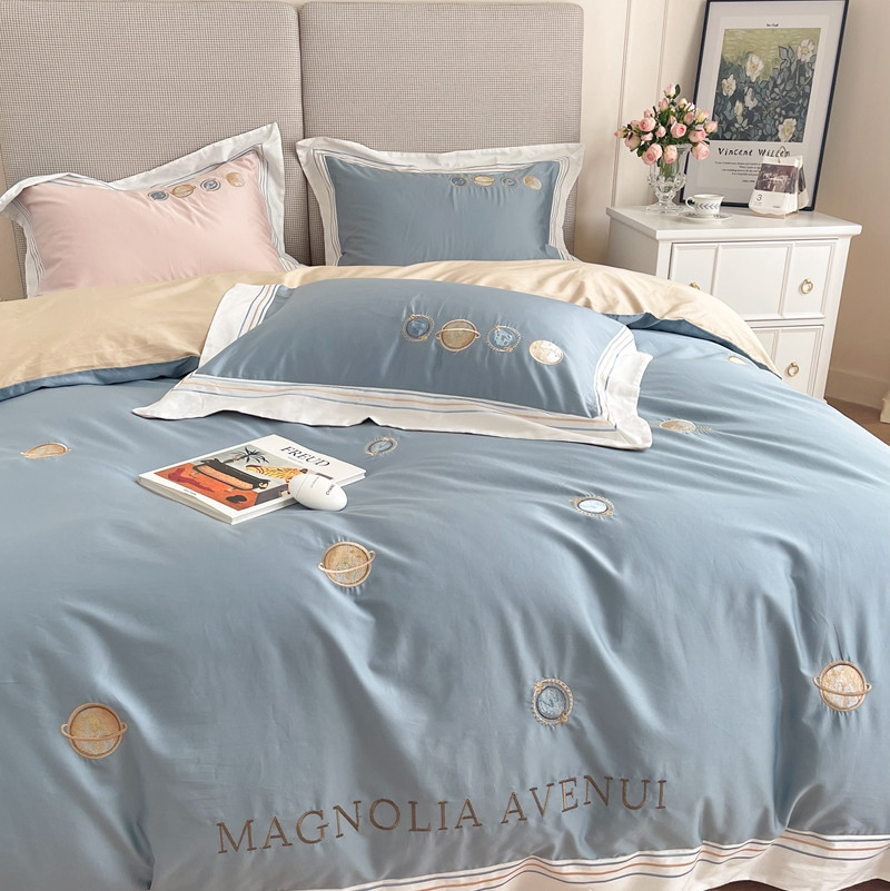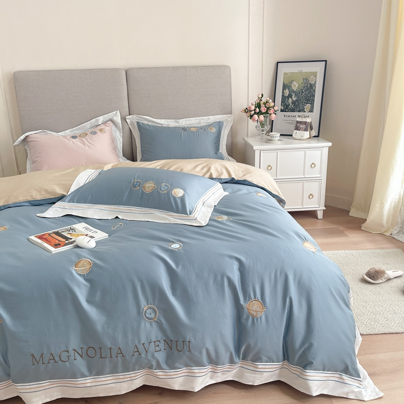 柚子 2021新款高端100支澳棉贡缎刺绣四件套 星游记-蓝