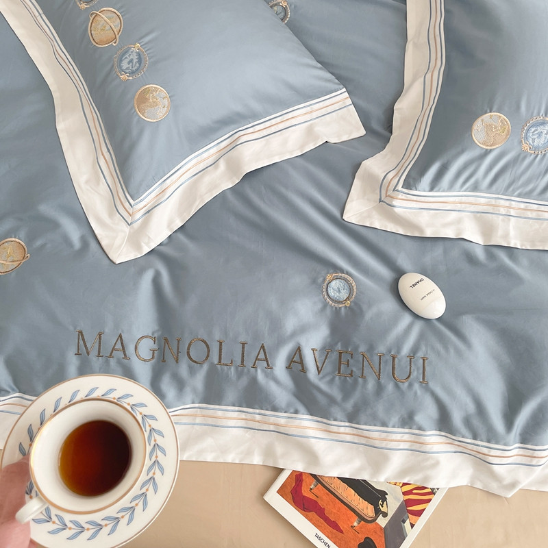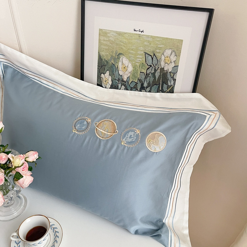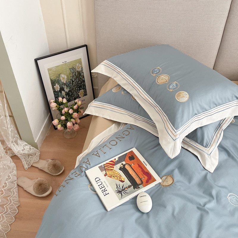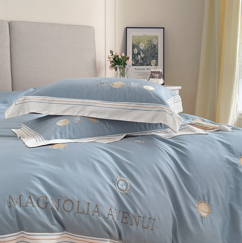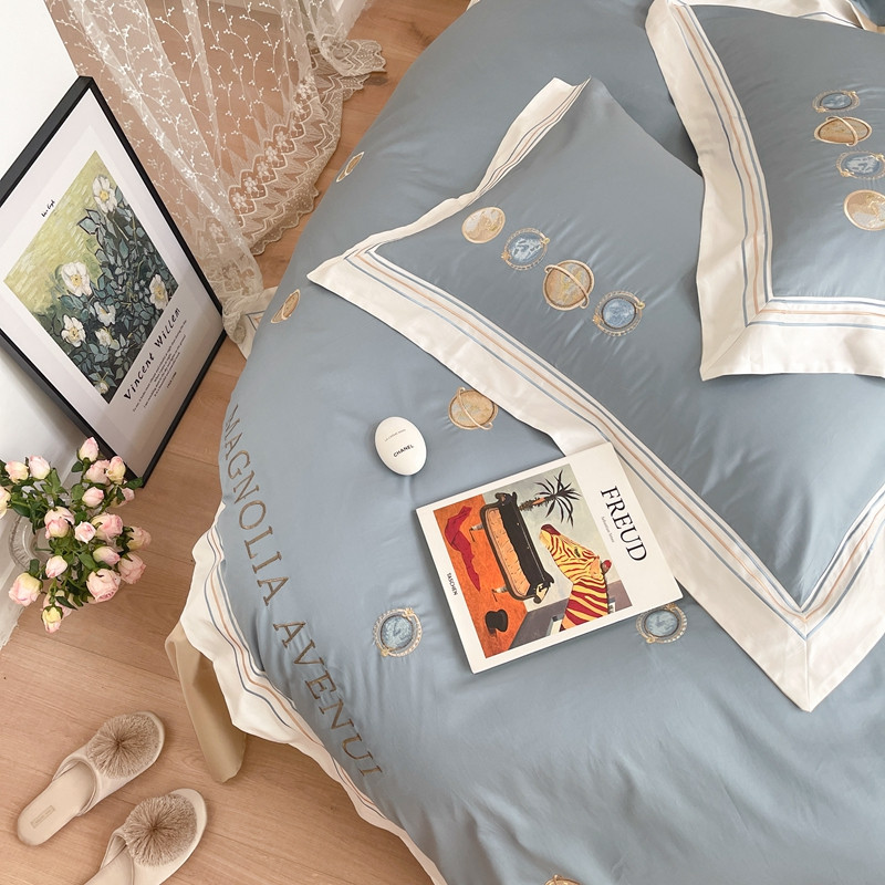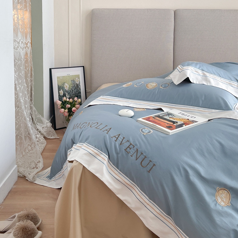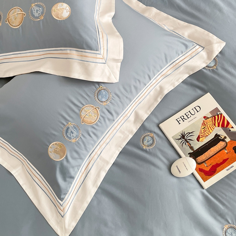 柚子 2021新款高端100支澳棉贡缎刺绣四件套 星游记-蓝