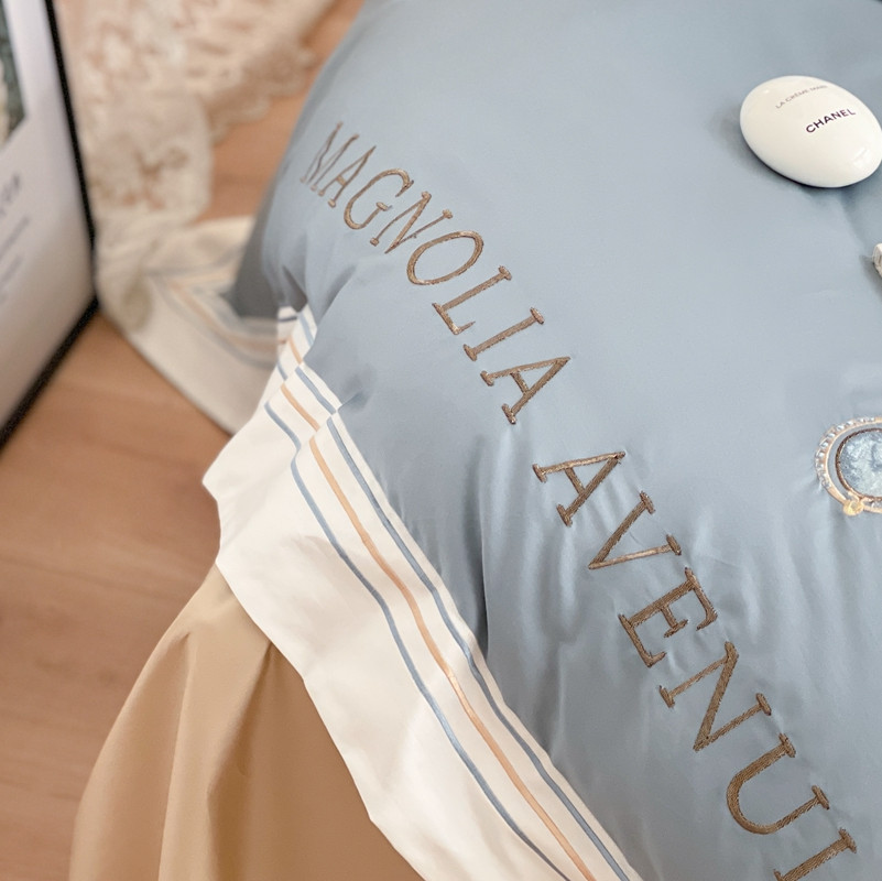商品名称:柚子 2021新款高端100支澳棉贡缎刺绣四件套 星游记-蓝