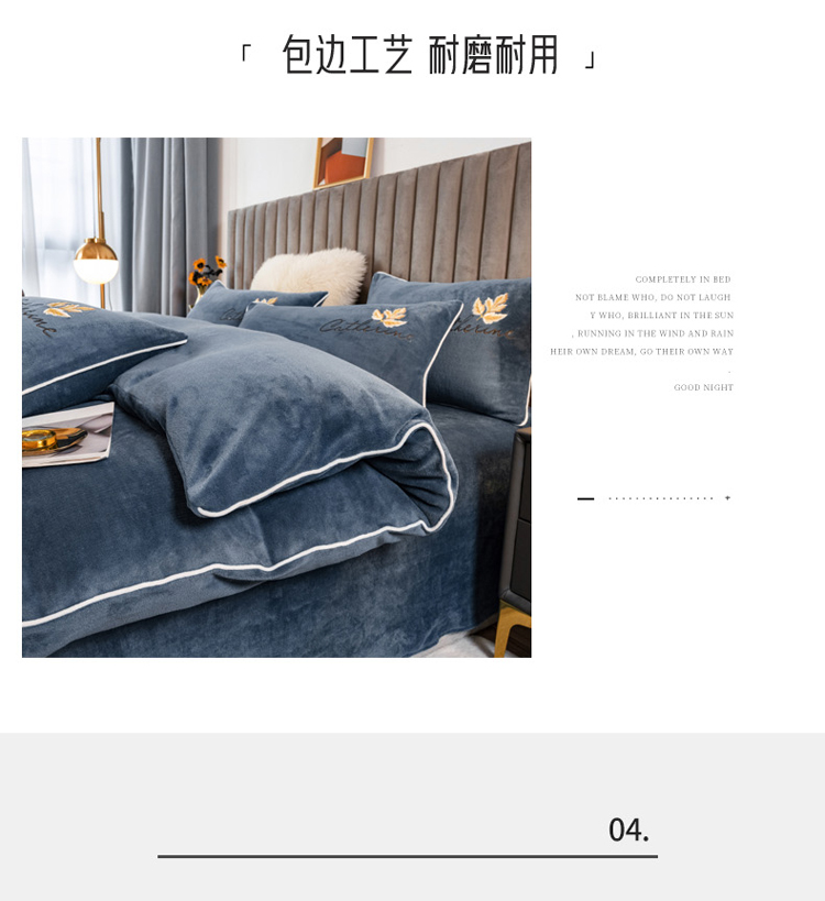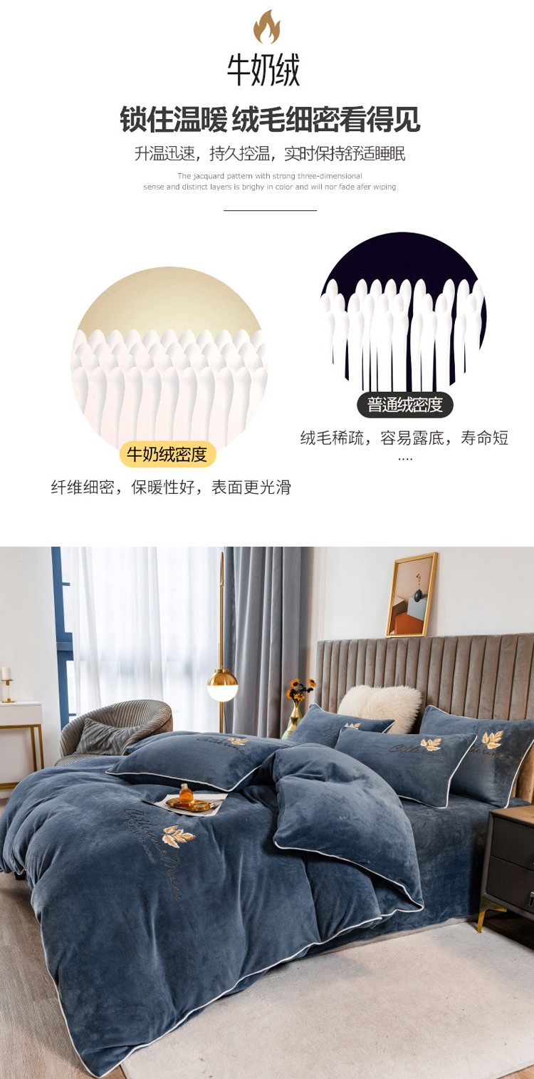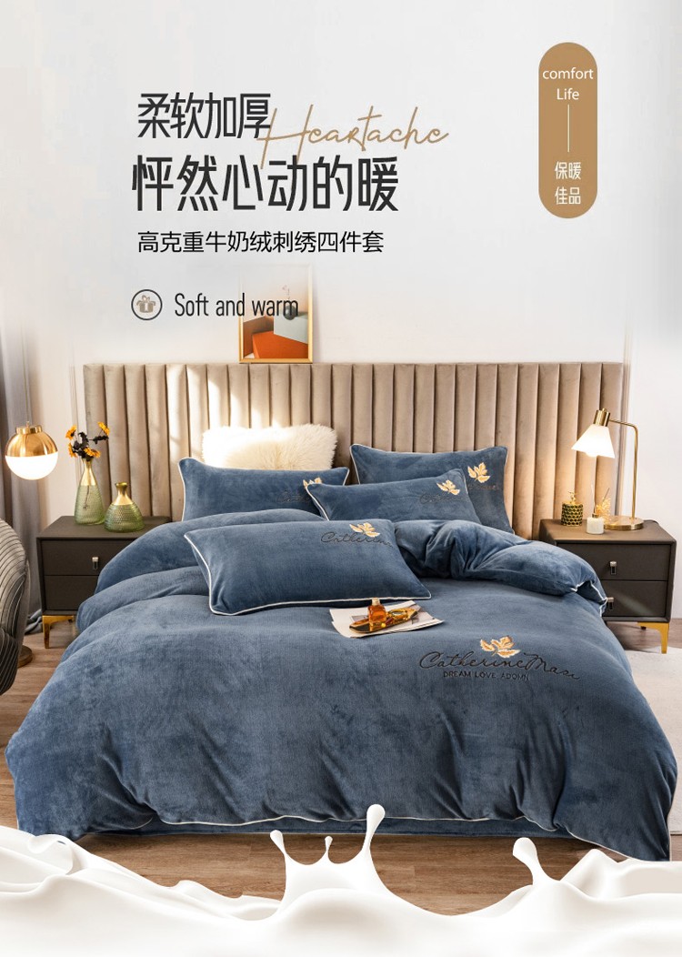 当前位置: 91家纺网 > 商品网购 > 床品套件 > 四件套 > 牛奶绒四件套 > 慕尚 2022新款高克重牛奶绒刺绣四件套 洛卡-宝石蓝