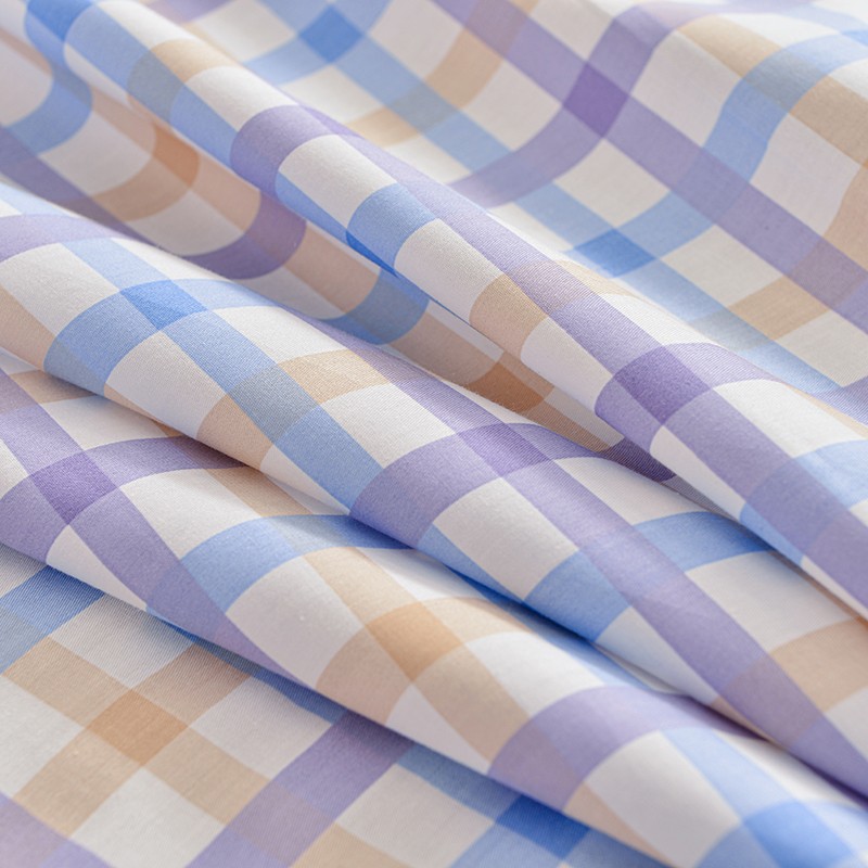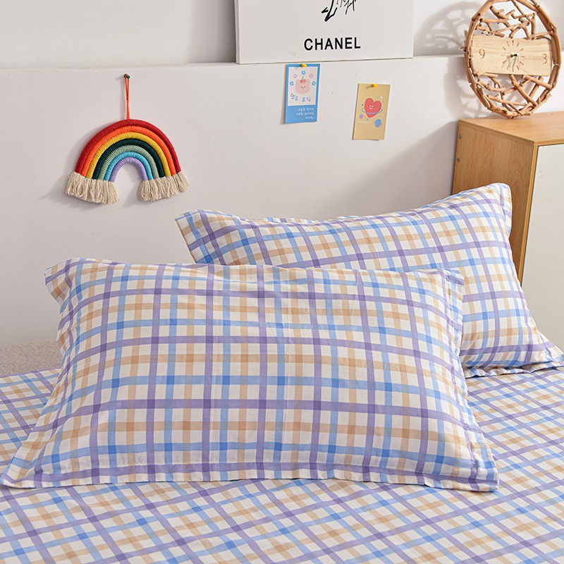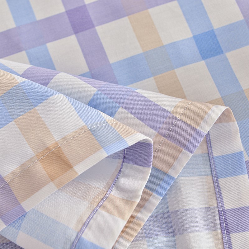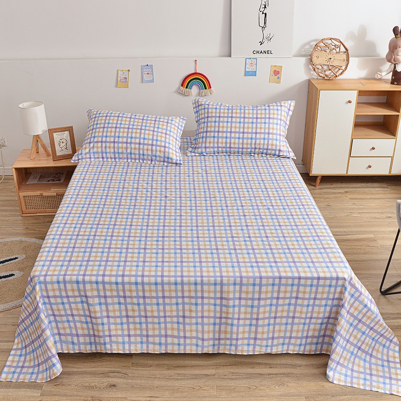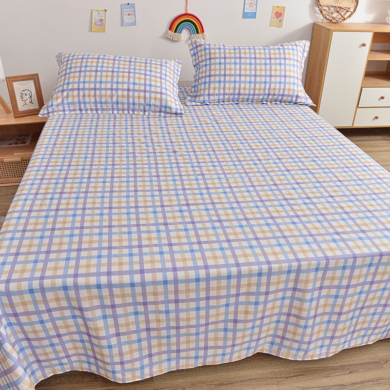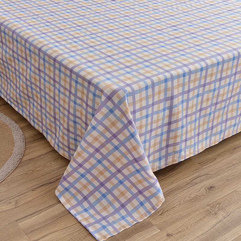 茉夕家纺 2021新款全棉印花床单 紫格子