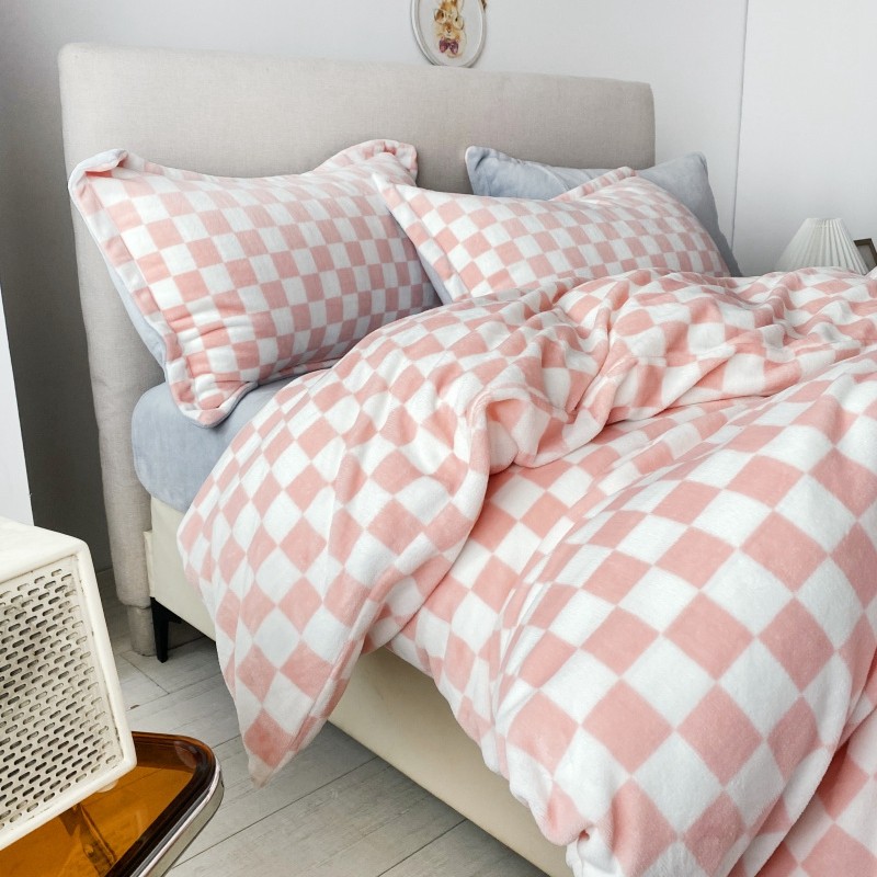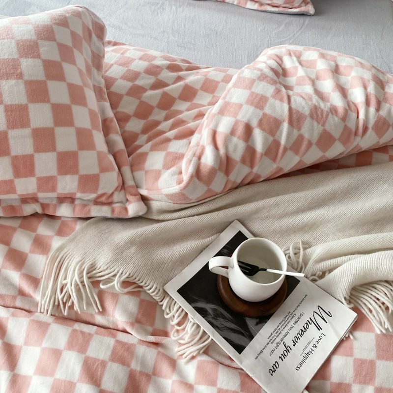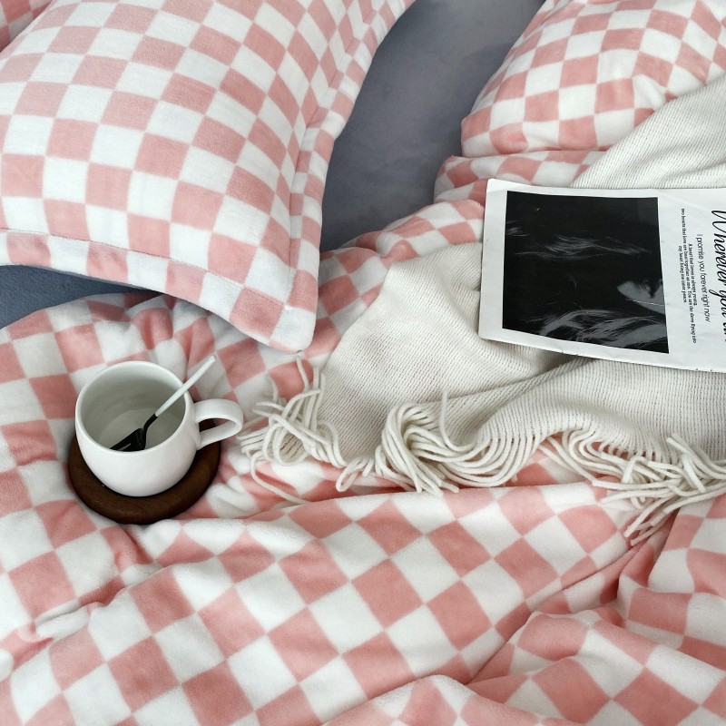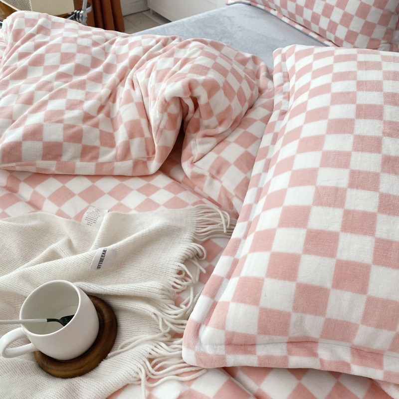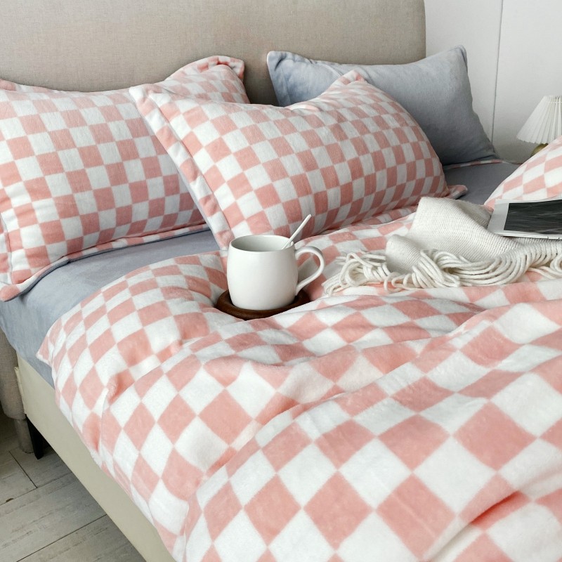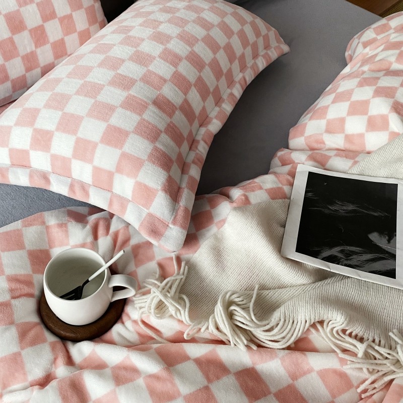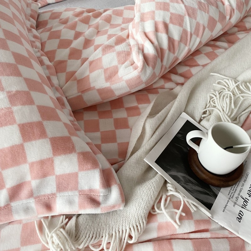 棉生活2021新款220g牛奶绒ins风绝绝子 蜜桃粉白格